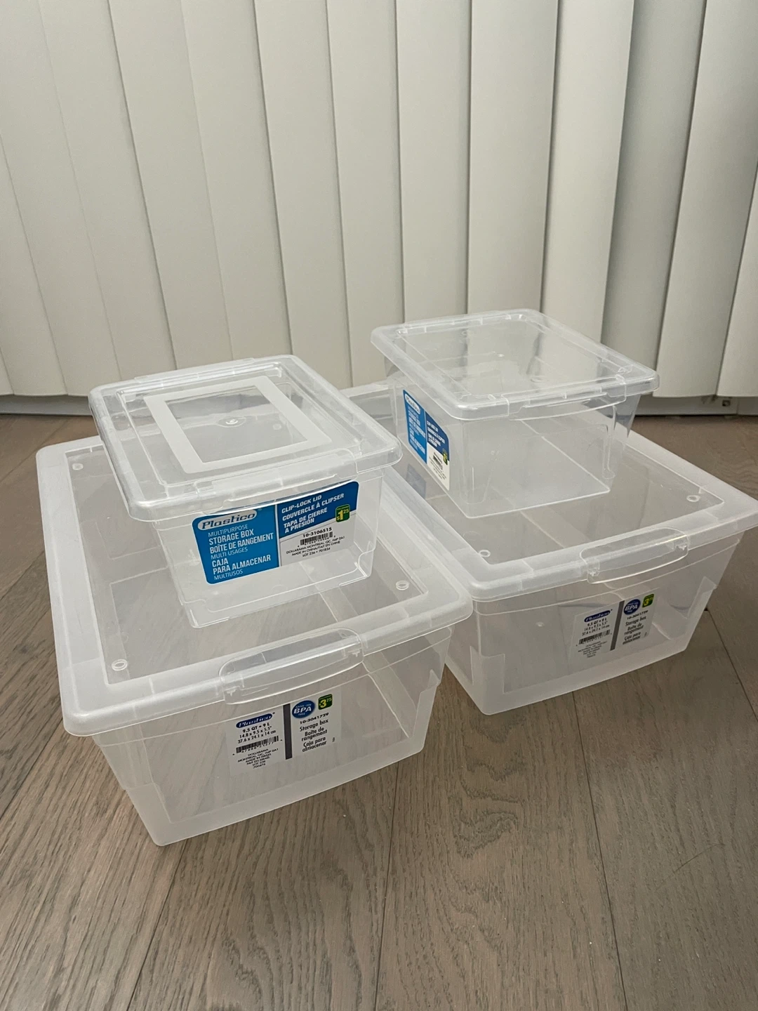 All 4 boxes for $5 Bigger one: 37.6 x 24.1 x 14 cm Smaller one: 17 x 13 x 10cm Other than normal wear it is in good condition to use. No broken parts or chips —————— *pickup downtown Toronto. DM for details. Unfortunately no returns and exchange due to second hand nature. First come first serve