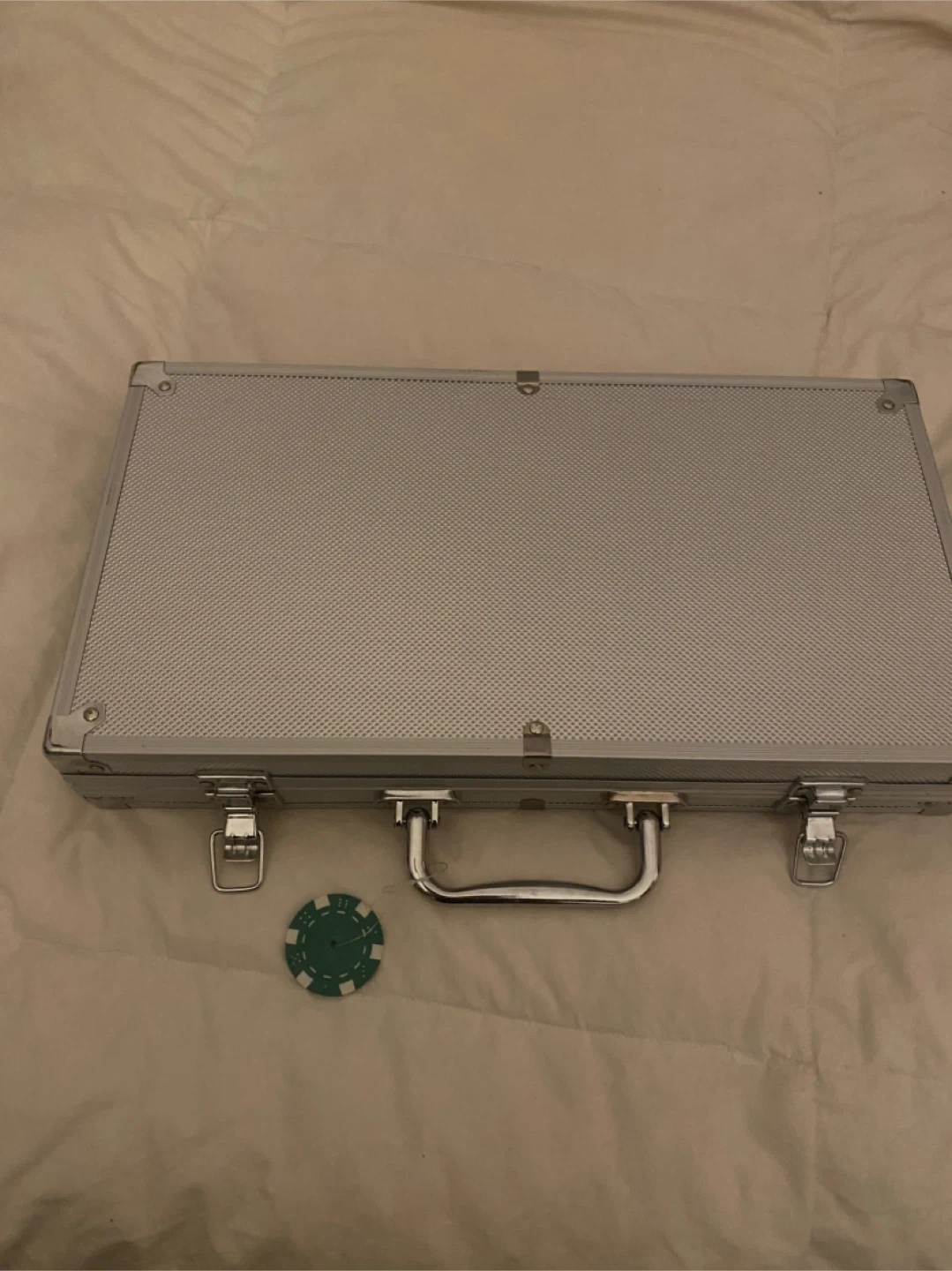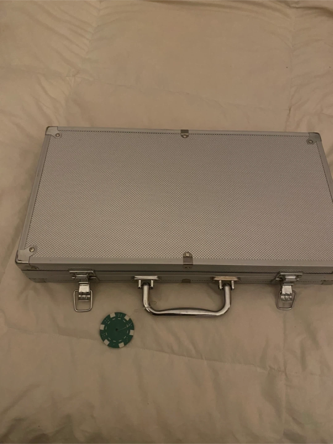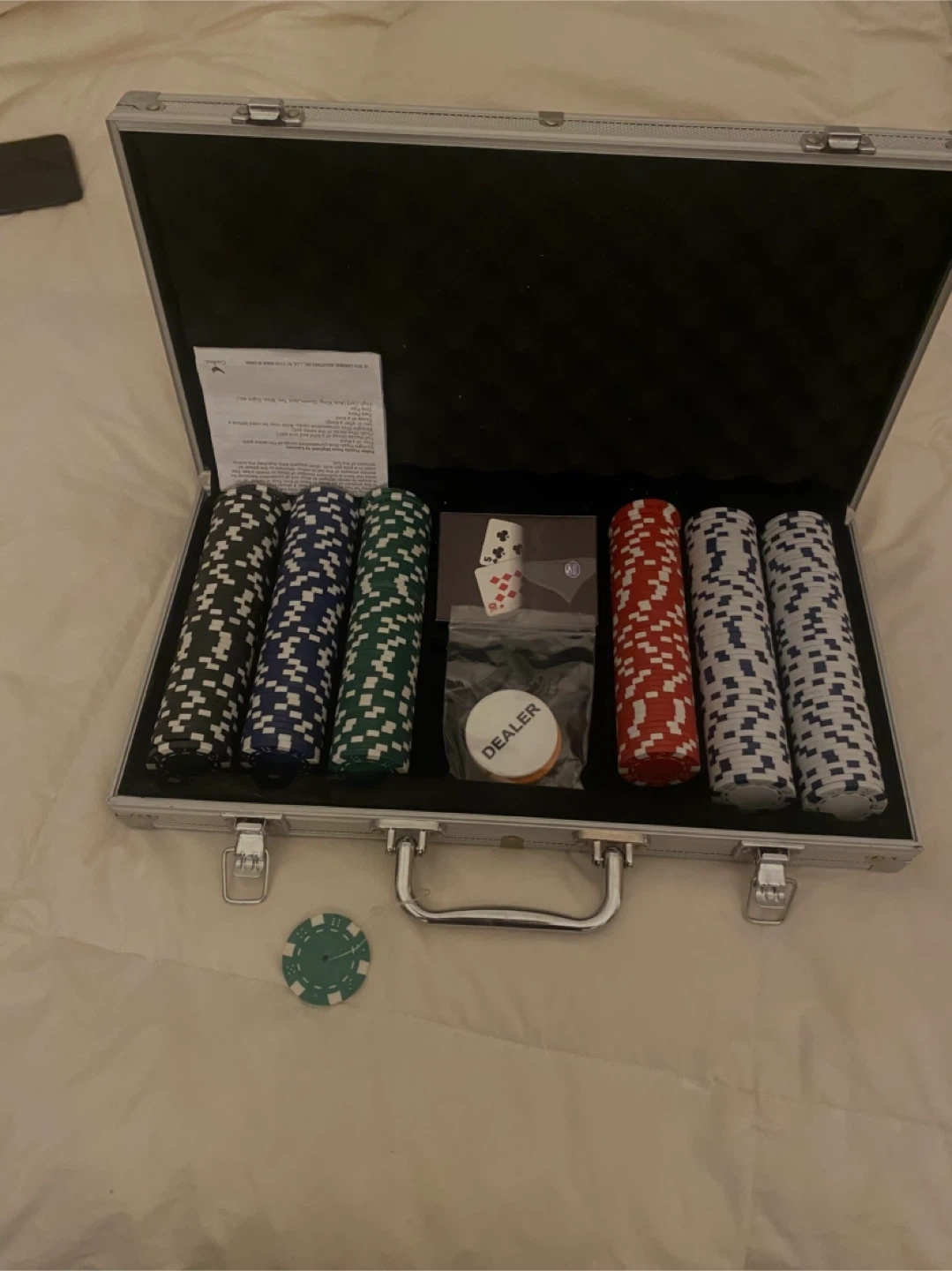 Selling a complete poker set, perfect for game nights with friends and family! It comes with a variety of chips, dice, and a dealer button, all neatly organized in a sturdy carrying case. Ready for a new home!