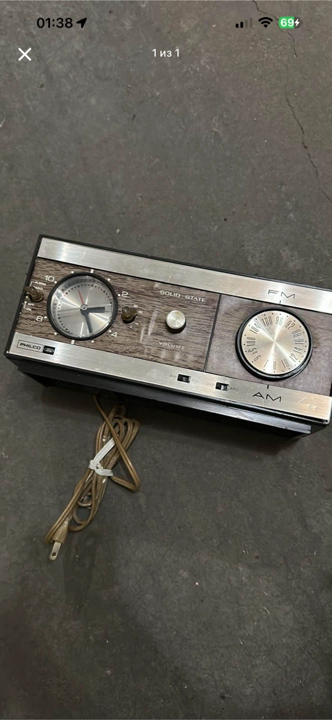 Selling a vintage Philco solid state AM/FM clock radio! It features a clock on the left side and the AM/FM radio dial on the right. The radio has a volume knob in the middle. A cool retro piece!