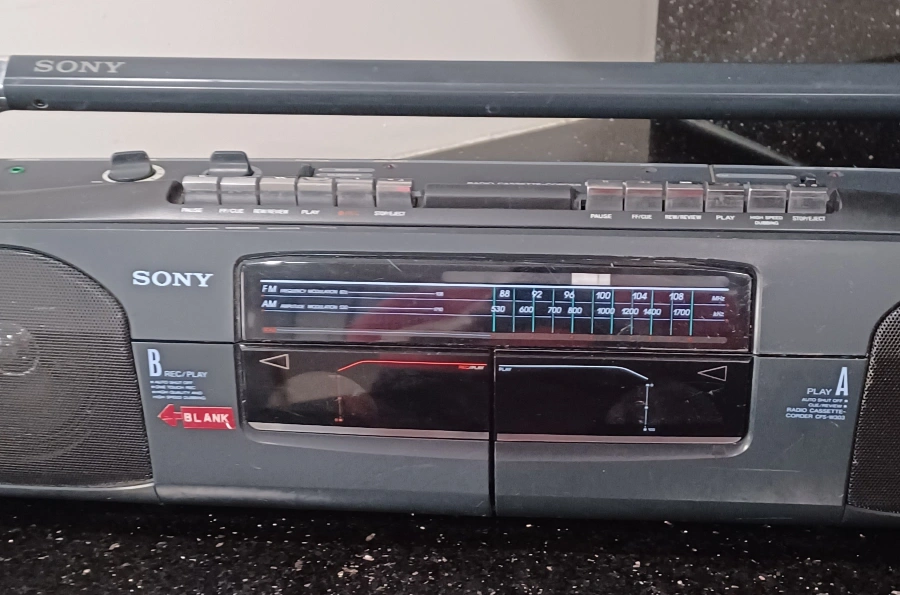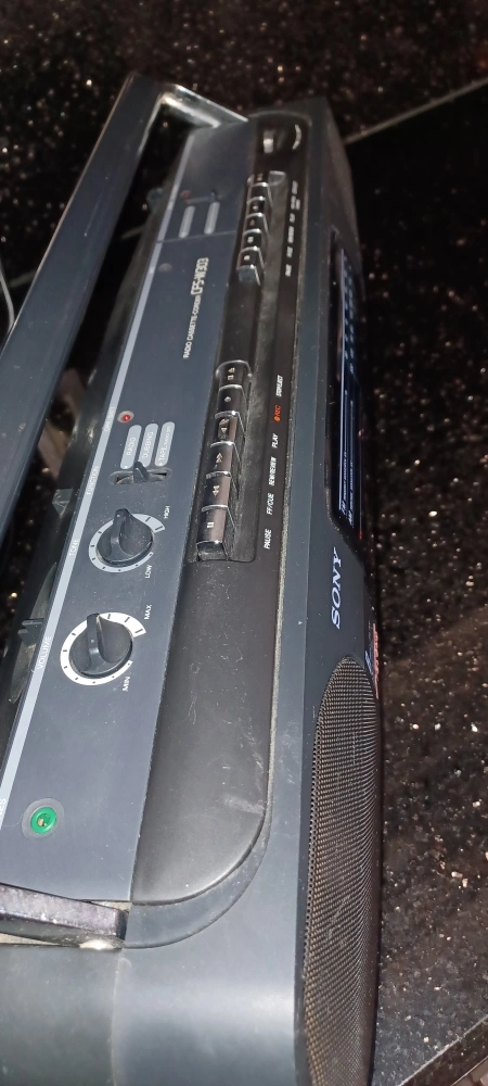 Selling a Sony CFS-W303 radio cassette recorder boombox. It has an AM/FM radio and a cassette player. The cassette player stopped working you need to change the band. Radio runs smoothly. Also works with batteries.