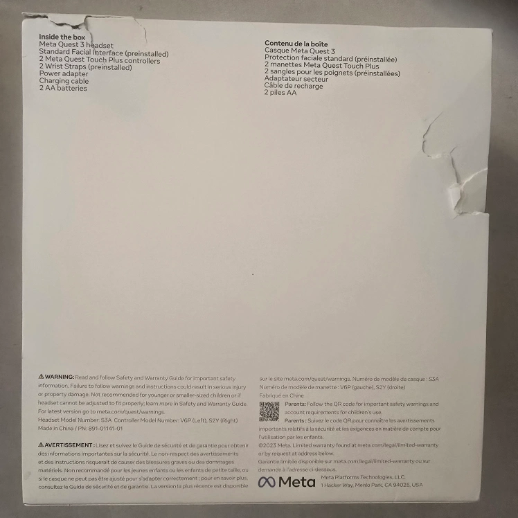 Selling a brand new Meta Quest 3 with 128GB of storage! It comes with: - Meta Quest 3 headset (preinstalled) - 2 Meta Quest Touch Plus controllers - 2 wrist straps (preinstalled) - Power adapter - Charging cable - 2 AA batteries