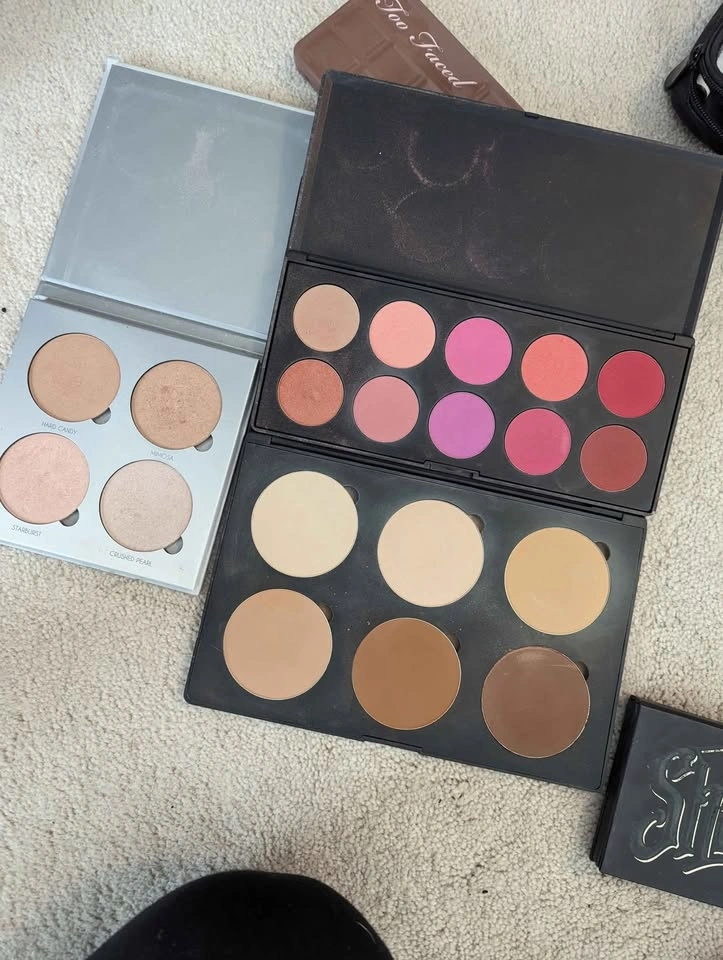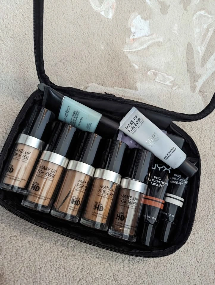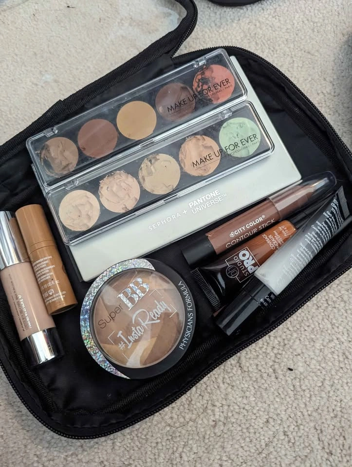 A 3 tier rolling train case filled with everything you need to start freelancing. Top tier is filled with disposable wands/sponges for sanitary applications. 2nd tier has 2 brush belts and a brush roll. 3rd tier has GUC makeup you can use to start working right away. Lots of brand names like Makeup Forever, Mac, Smashbox, Too Faced, Kat Von D, NYX and Colorpop. All makeup has been used professionally so is all uncontaminated/sanitized. Bottom has eye and face palettes, and there are 4 Velcro pouches filled with foundation, eye makeup, lip product and cheek products. The case itself retails for over $400 and is in great condition, all wheels still in tact and rolling and the handle still rises/descends with ease. All the latches for each tier are in great condition and can be easily sealed. Pickup in Brooklin near Thickson/Carnwith