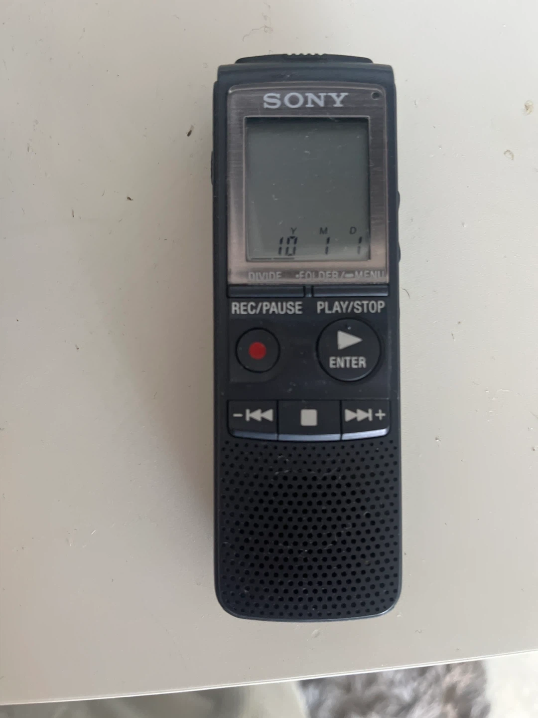 Selling a Sony digital voice recorder. Great for recording lectures, interviews, or just jotting down ideas on the go! It's in good condition and ready for a new home