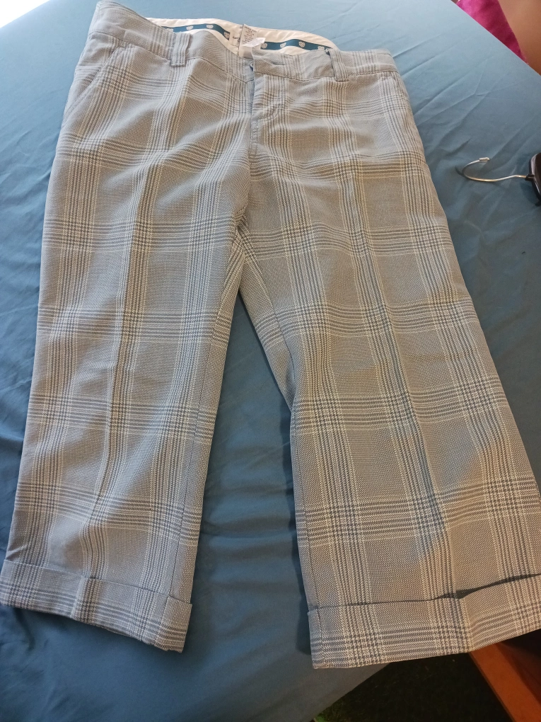 Selling a pair of American Eagle Outfitters plaid capri tweed pants. They are made of 100% cotton and have a stylish plaid pattern. Perfect for a casual look!