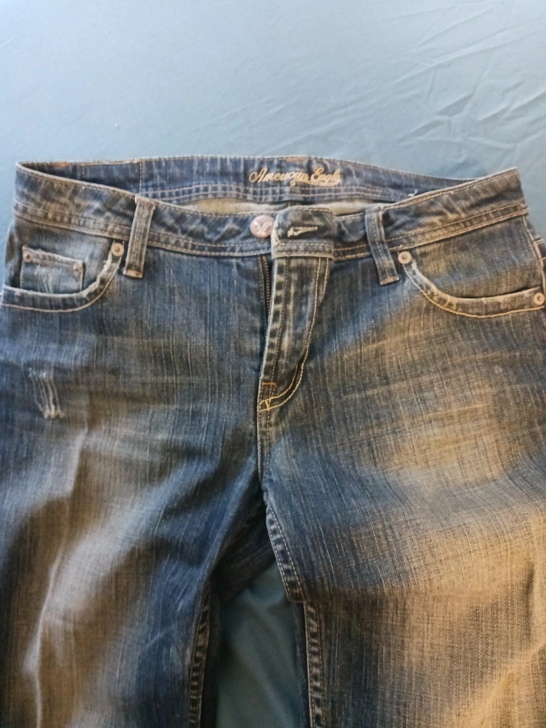 Selling a pair of American Eagle Outfitters jeans called boyfriendcut. They are a size 10 and have a bit of a distressed look with some fading and wear. Brand new and looking for life partner!