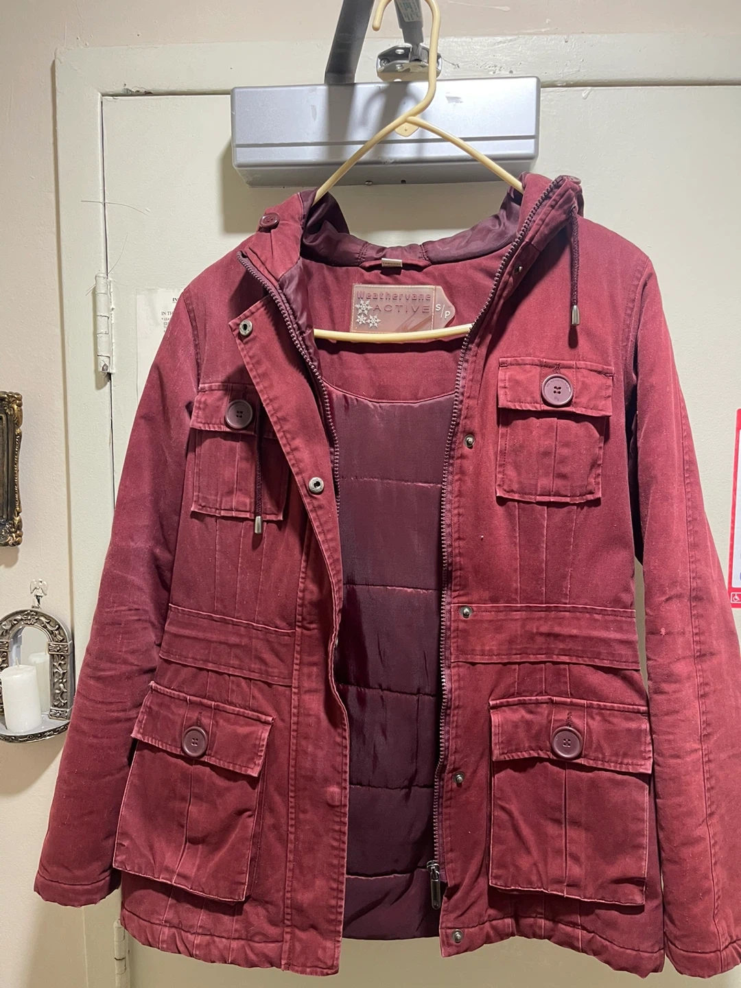 Selling a Weatherproof Active jacket in a lovely burgundy colour! It's in great condition and perfect for staying warm on chilly days. The jacket features a hood and several pockets, making it both practical and stylish. It's a great addition to any wardrobe! Check other listings :)