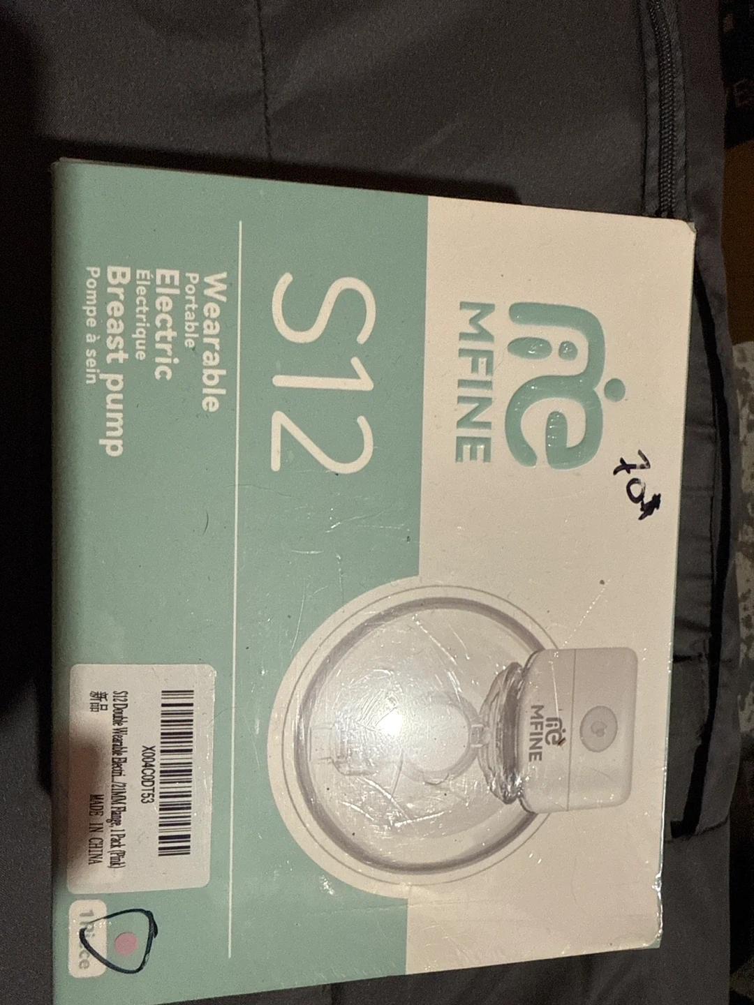 Selling an MFINE S12 wearable electric breast pump. It's a portable and convenient option for pumping! The box includes everything you need to get started.