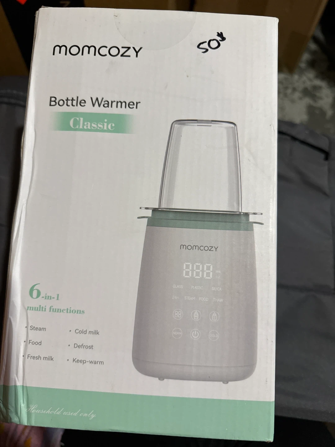 Selling a Momcozy bottle warmer, classic model. It's a 6-in-1 multi-function device that can steam, warm cold milk, defrost, and keep food and fresh milk warm. Household used only
