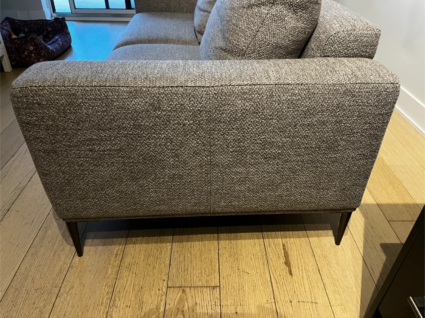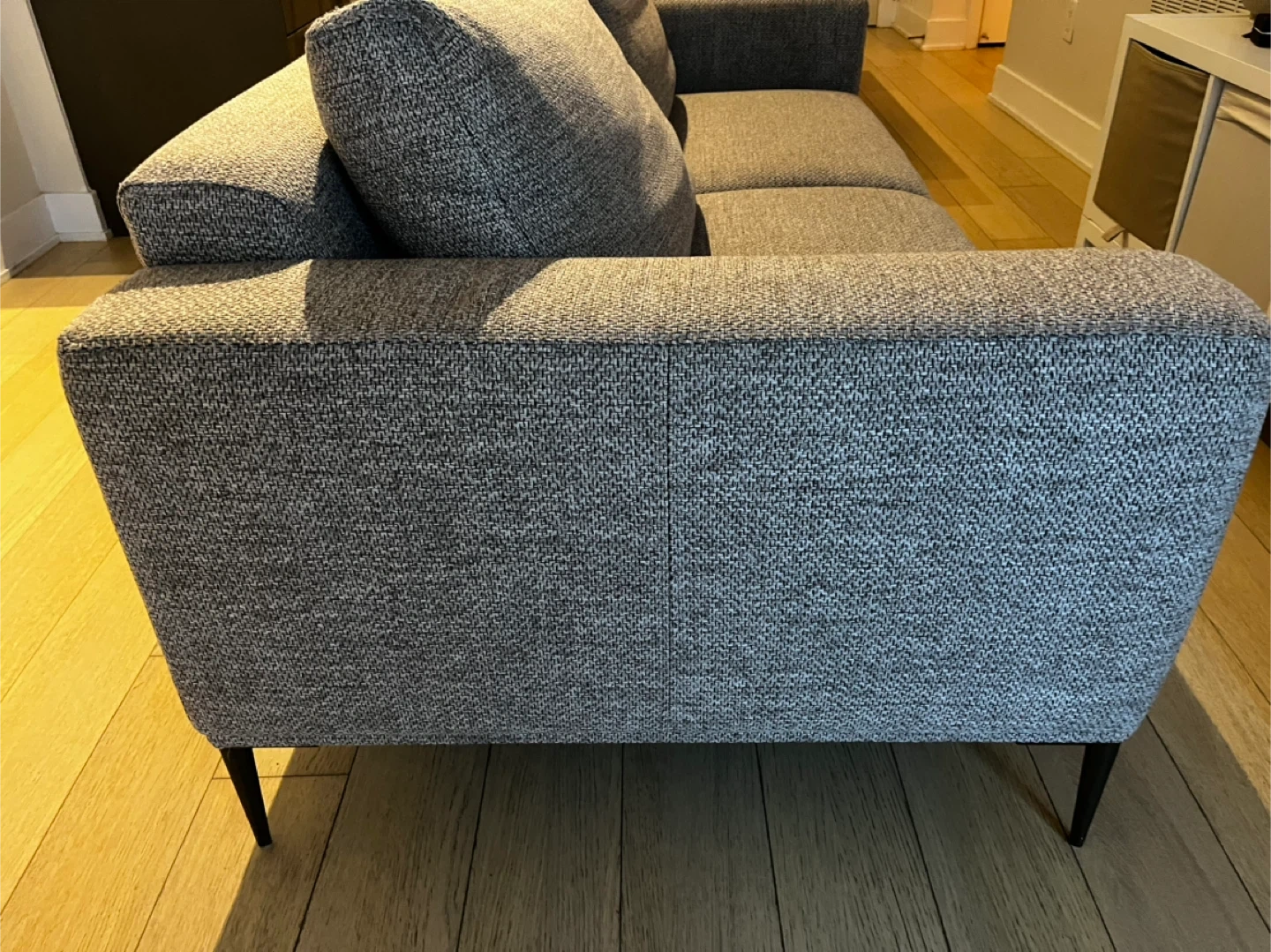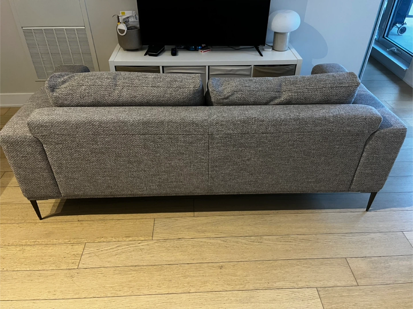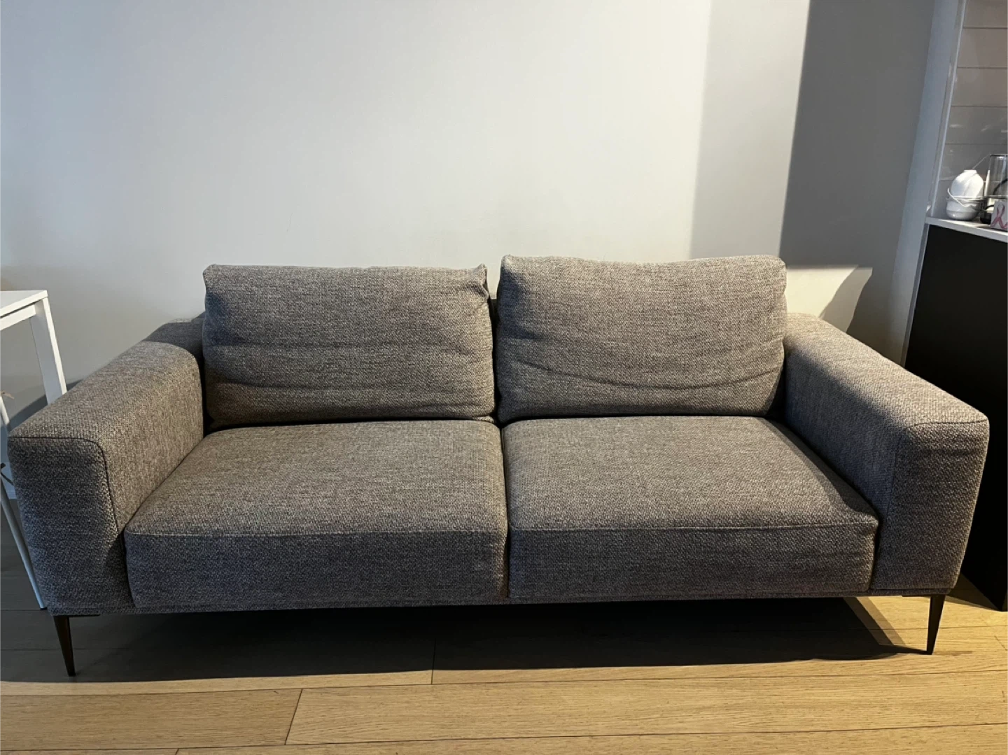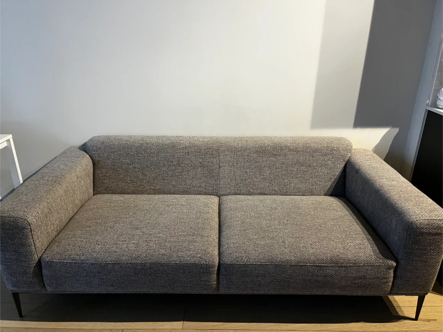 MOVING SALE!!! Selling a comfy 3-seater sofa! It's in great condition and would be perfect for all spaces. The grey colour is neutral and would fit in with any decor. The material is a nice, durable fabric.