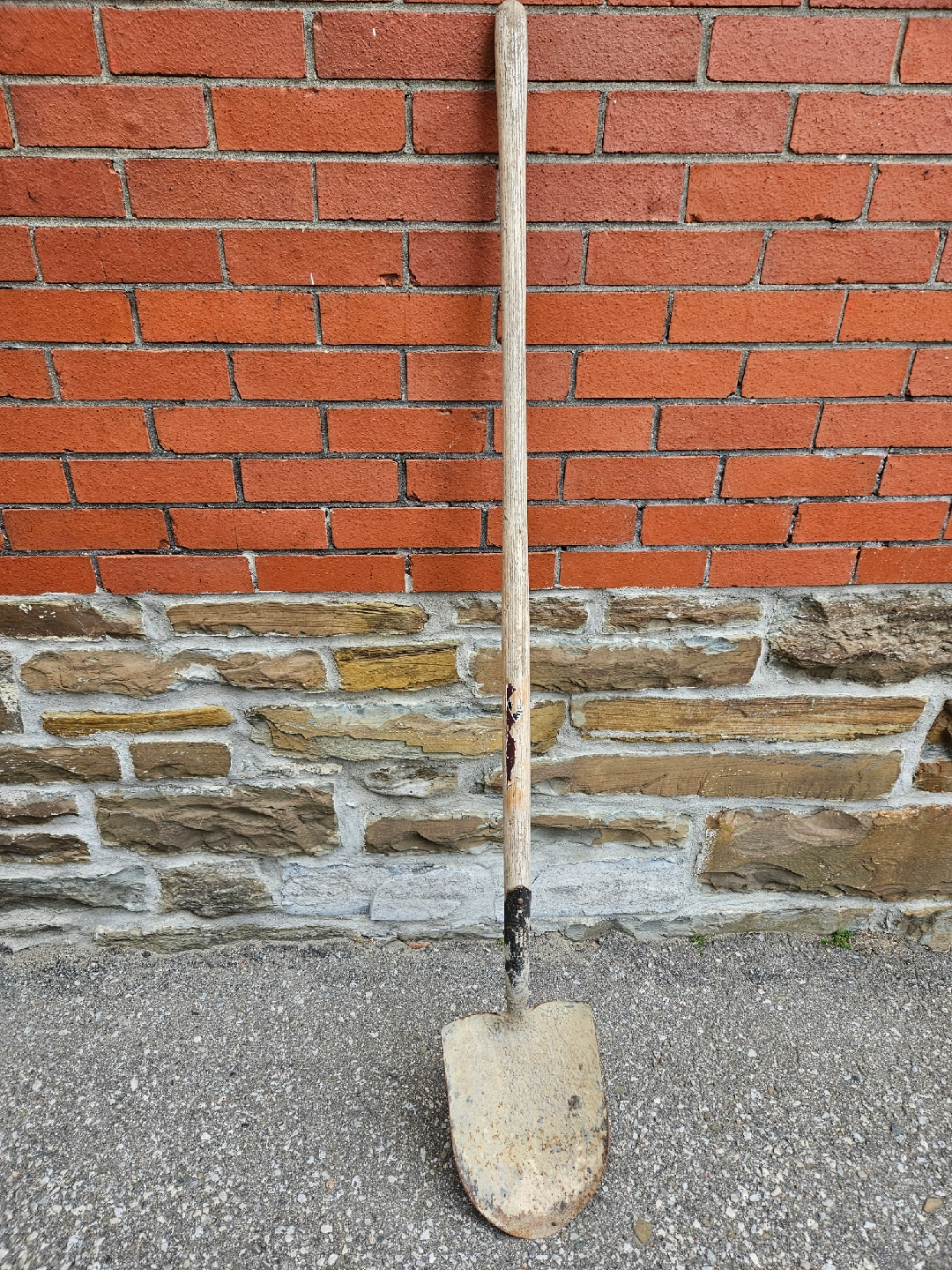 Selling a used shovel. It shows signs of wear and rust, but is still functional for digging and gardening tasks