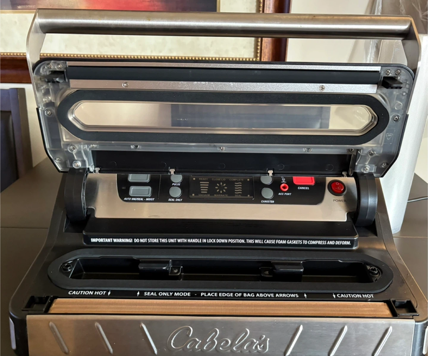 Selling a Cabela's Commercial Grade food vacuum sealer. It's in great shape and ready to help you preserve your food. Perfect for sealing meats, vegetables, and more to keep them fresh longer. Get ready to enjoy your garden harvest or bulk purchases with this handy kitchen appliance
