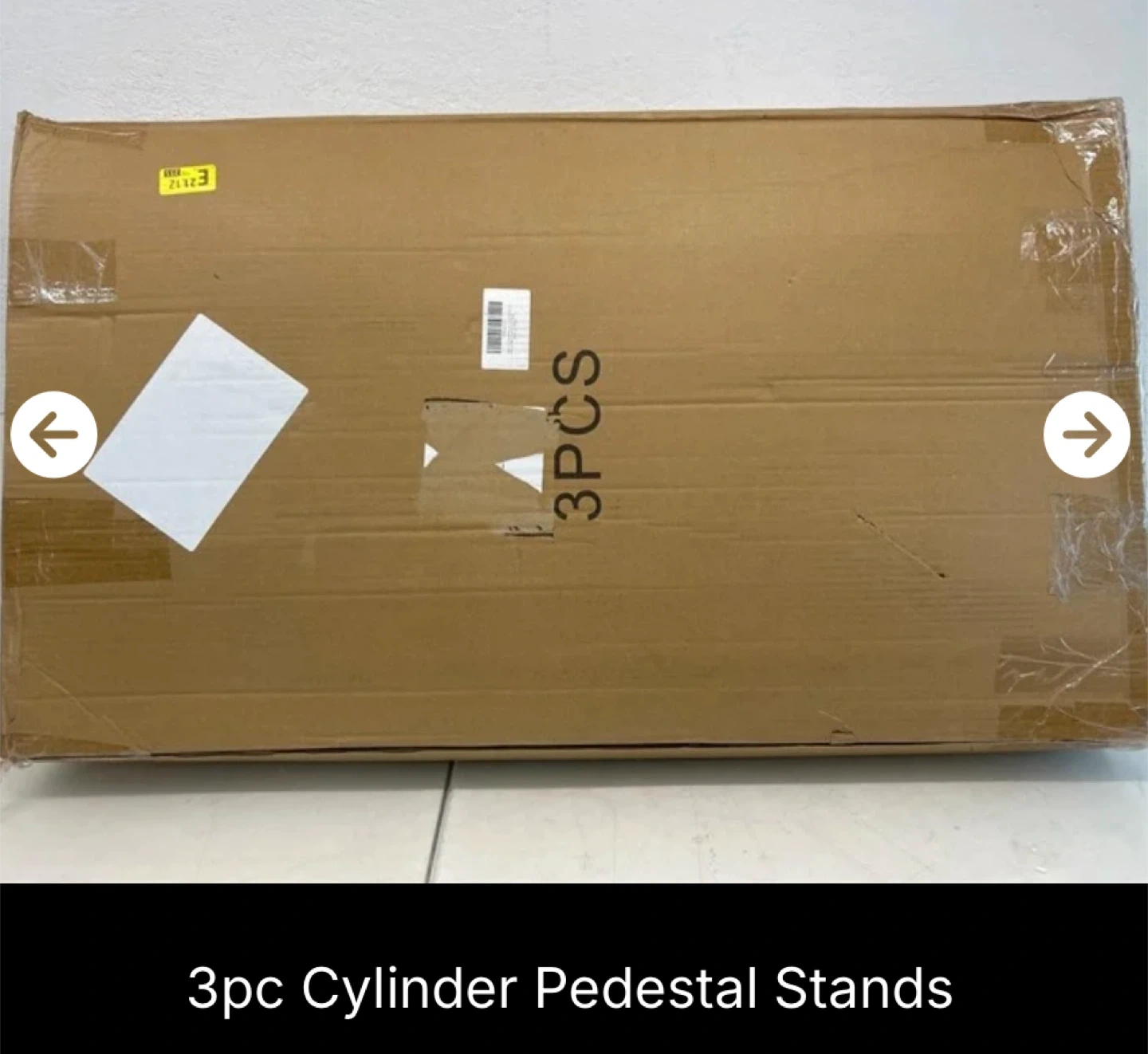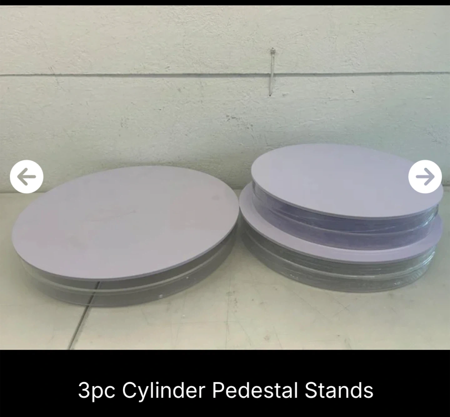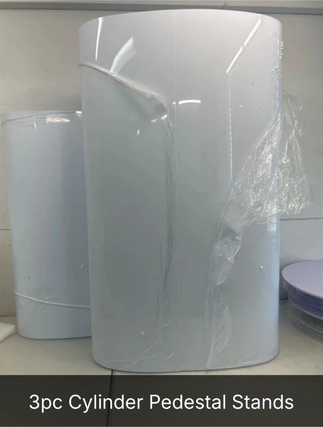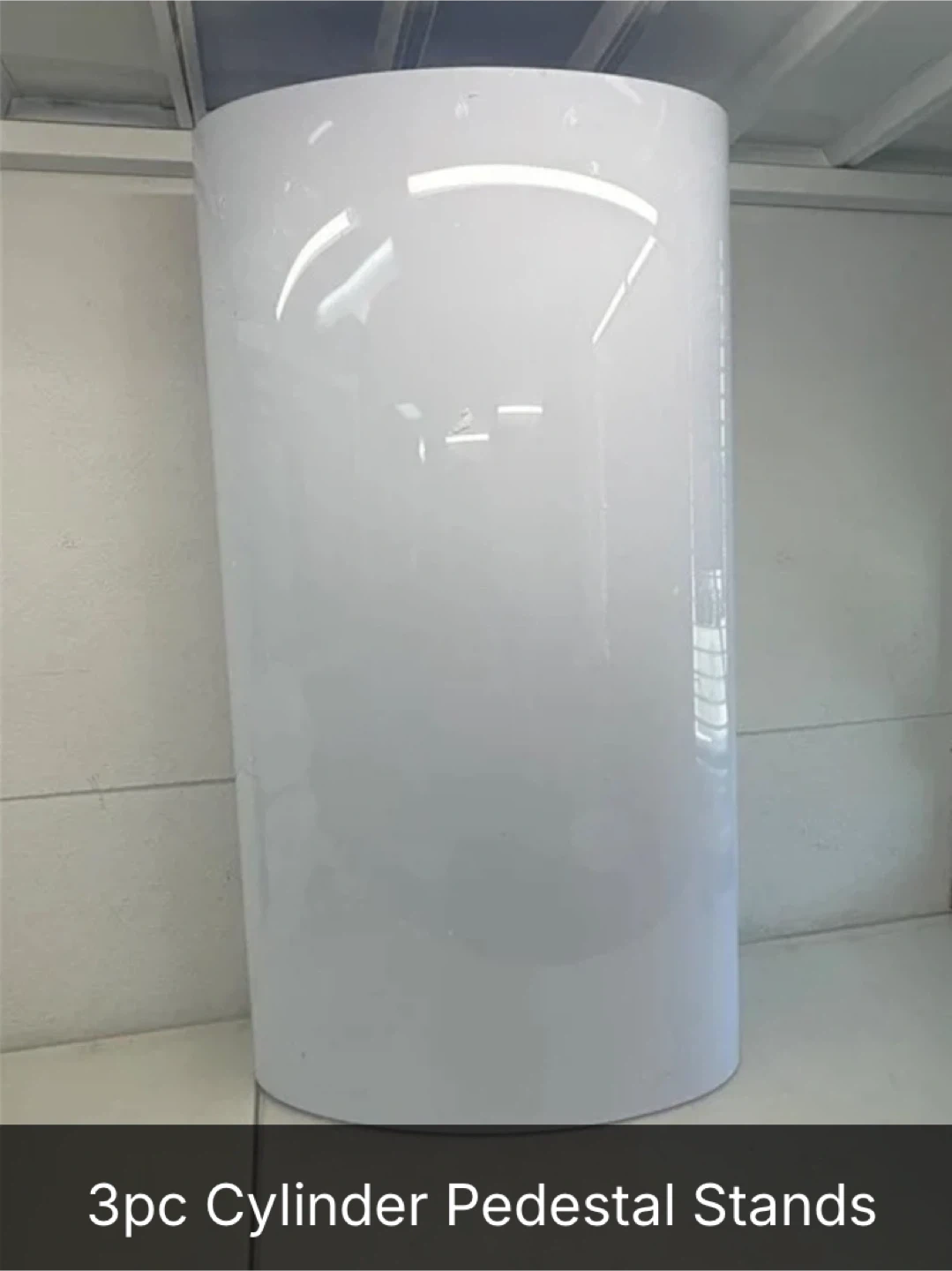 White Cylinder Stands for Parties - 3 Piece Set, Round. 35.43''(L),29.52''(M),23.62''(S) Brand New in Box. $125 Reg. Price $225 +HST