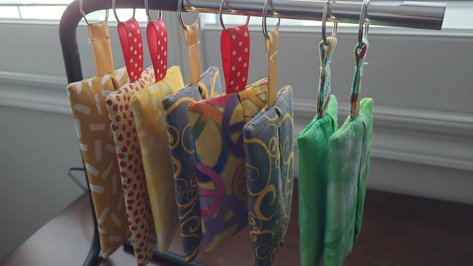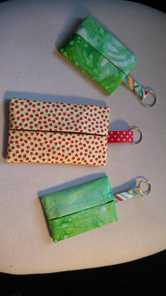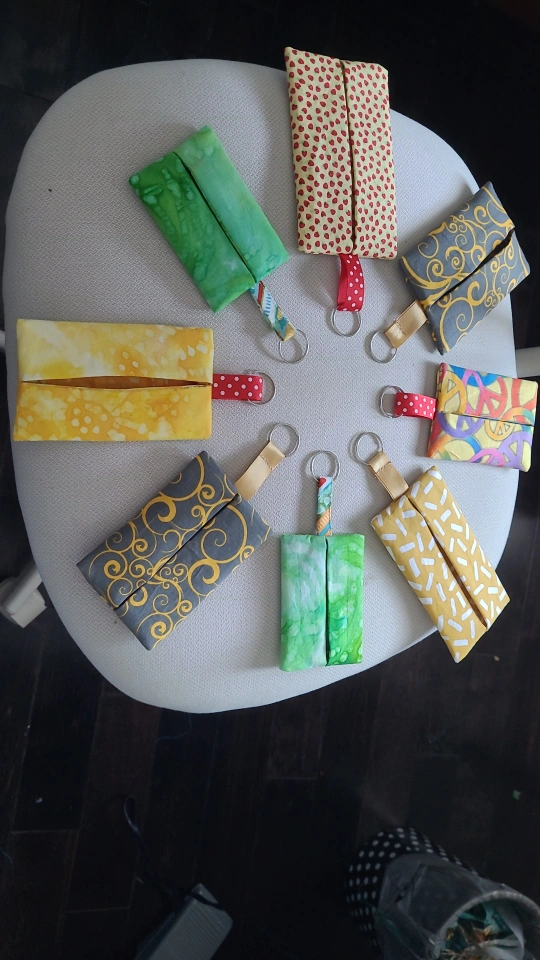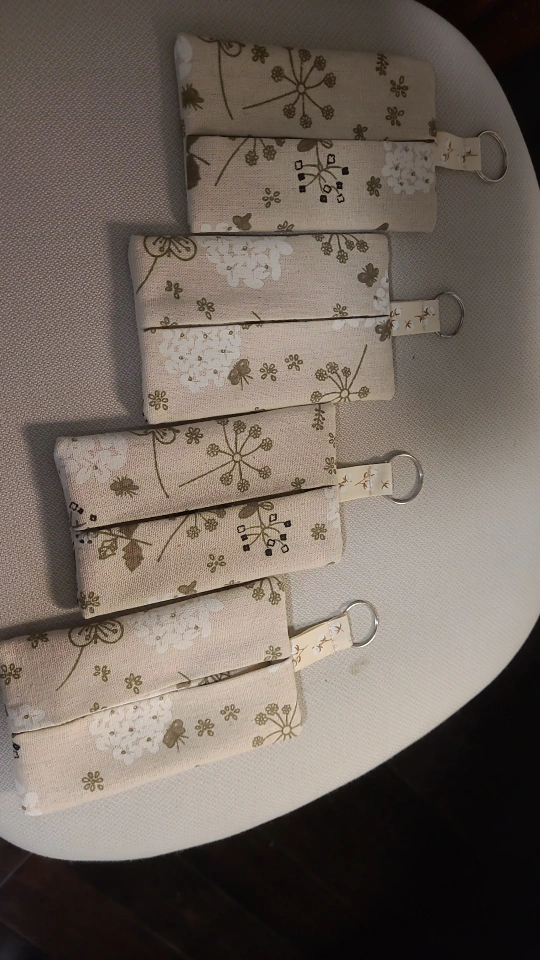 These are handmade fabric functional wallet keychains. They come in assorted colours and patterns. Perfect for keeping your hand sanitizer handy! Or use as party favour bags, kids return gifts . attach it to your bag so you never lose your important things.