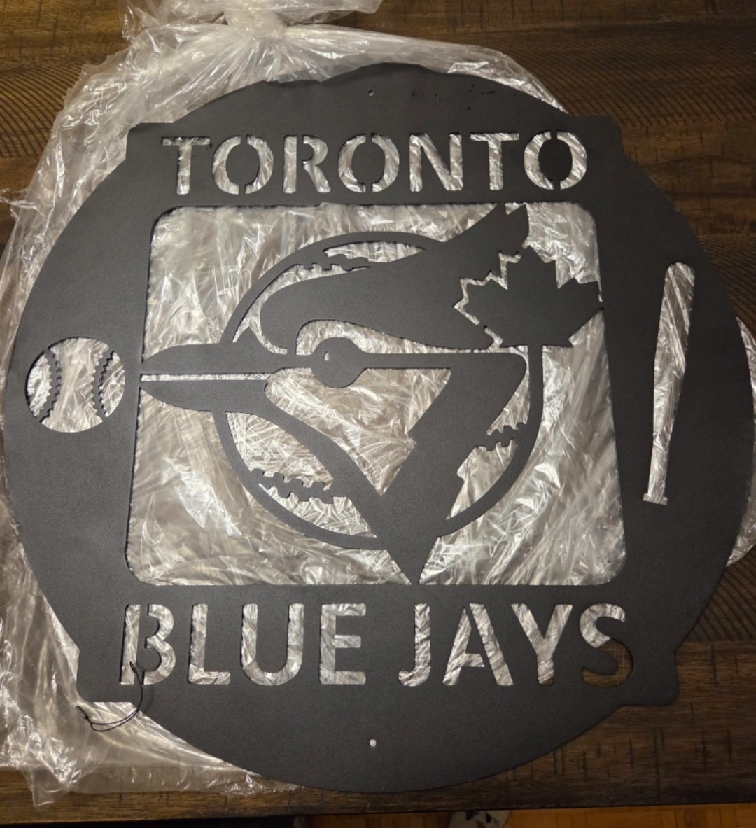 Show your Blue Jays pride with this metal wall decor! It features the Toronto Blue Jays logo and would look great in any fan's home or office. Solid black decor.