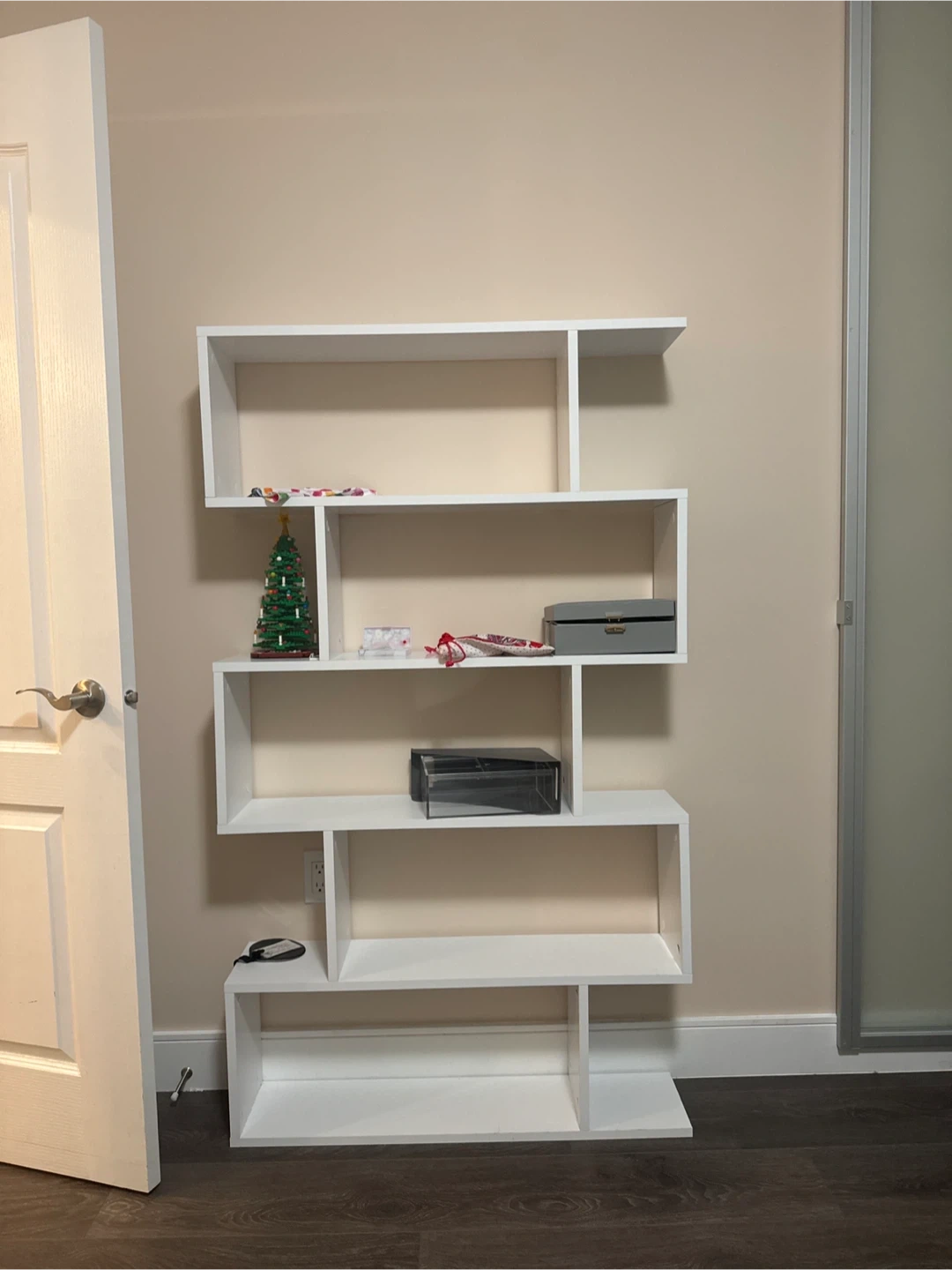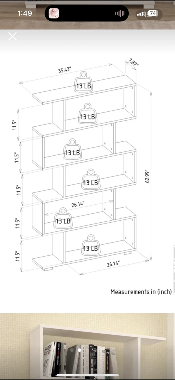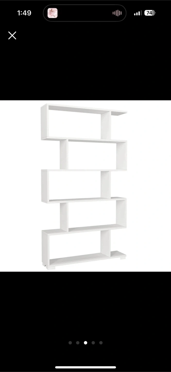 Selling a modern bookshelf in great condition! It's white and has a unique zig-zag design. Dimensions: - Height: 62.99 inches - Width: 35.43 inches - Depth: 7.87 inches Pick up only