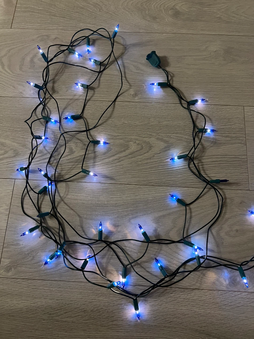 Selling a string of blue Christmas lights! They're in great shape and ready to brighten up your home for the holidays 12 feet/1 roll 3 rolls available Price is for 1 roll Like new