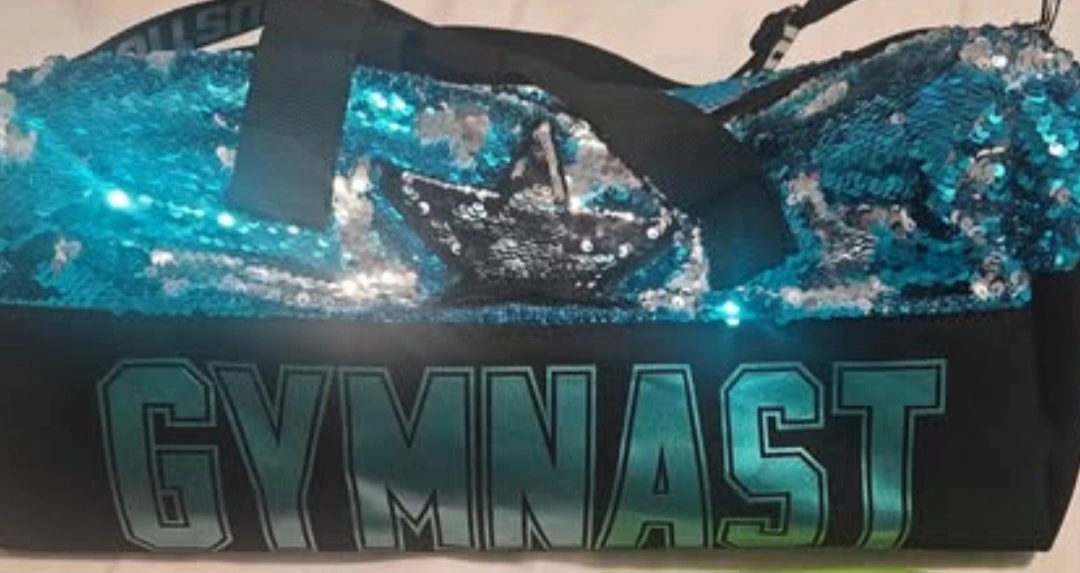 Justice gymnast duffle bag in excellent condition! This bag features a sparkly sequin design on the top half and "GYMNAST" printed on the bottom half. Perfect for carrying your gear to practices or competitions