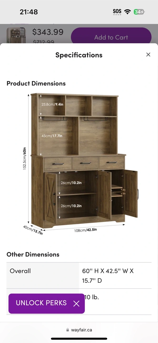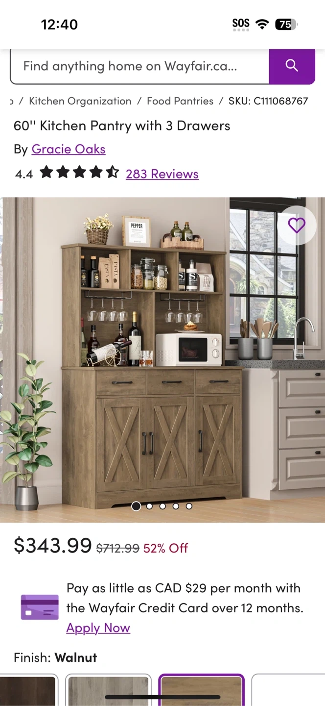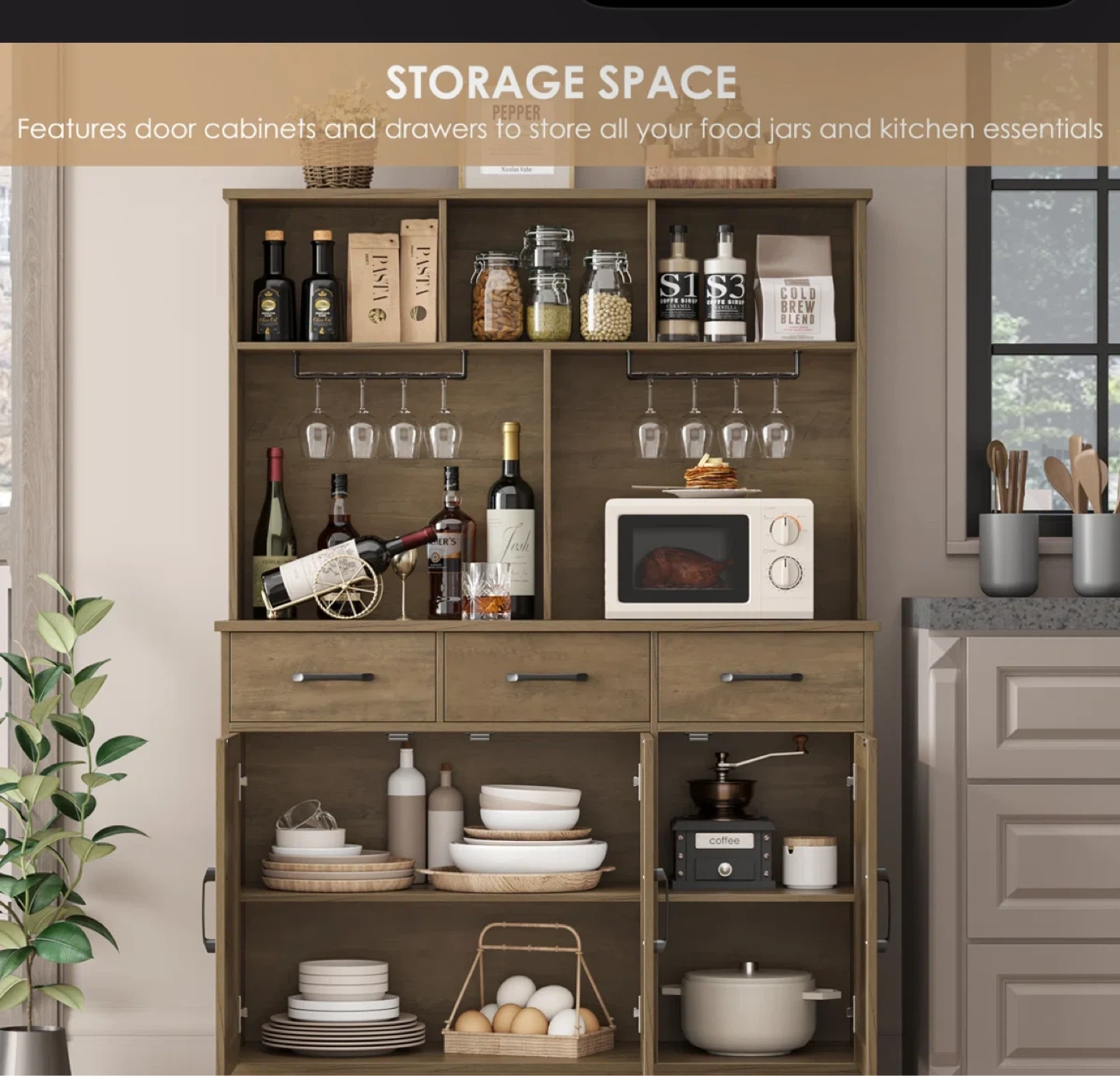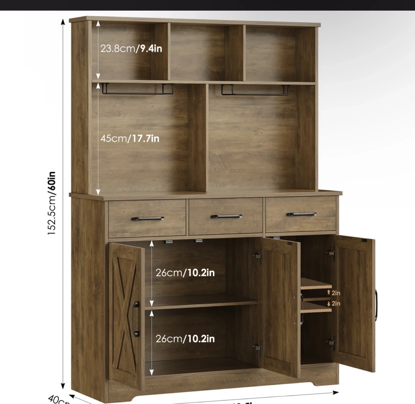 This Gracie Oaks kitchen pantry offers ample storage with door cabinets and drawers, perfect for all your food jars and kitchen essentials! Key features: - Dimensions: 60" H x 42.5" W x 15.7" D - Features door cabinets and drawers for storage - Originally bought for $343.99