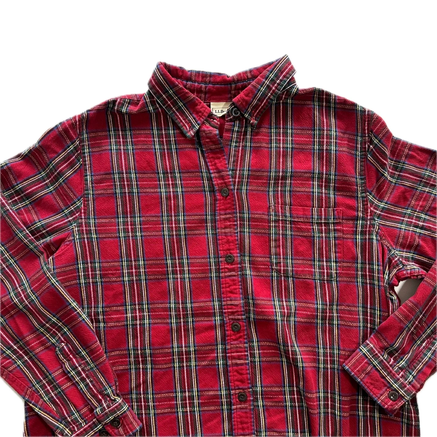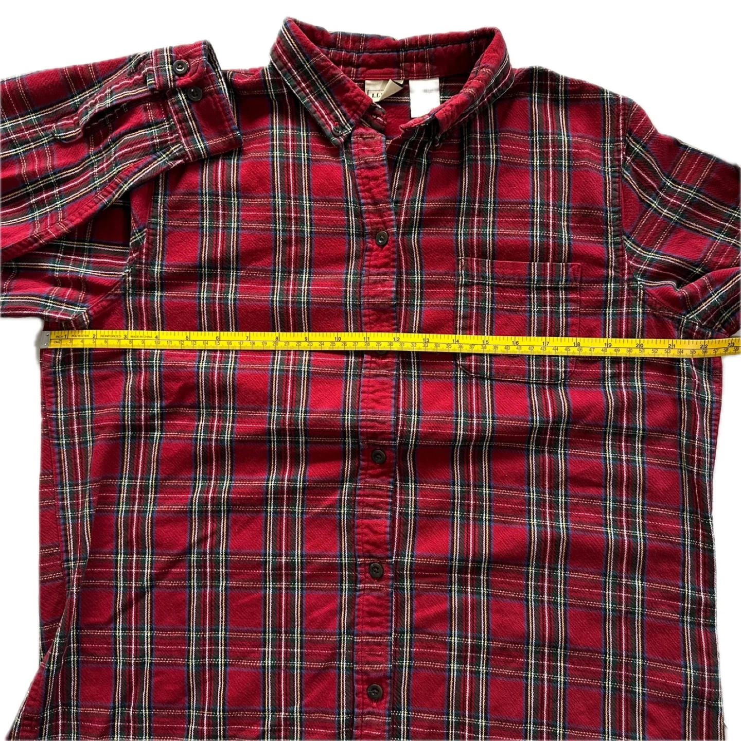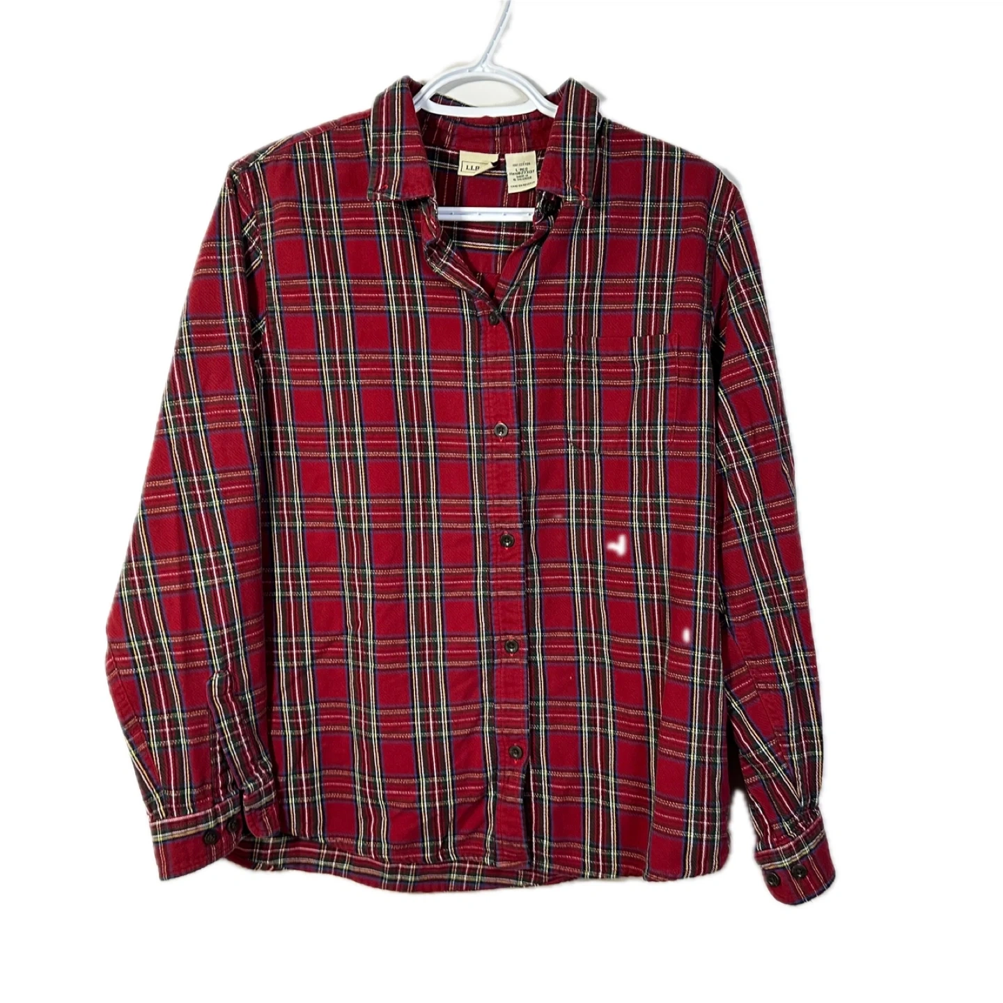Cozy L.L.Bean flannel shirt in a classic red plaid pattern! This women's size large shirt is perfect for layering or wearing on its own. It's made of comfortable cotton material and is in great condition. A timeless addition to any wardrobe! Condition : Preowned. Good condition. Lightly worn. No stain. No holes. The white part in the photos are only a reflection . The shirt has no flaws. Size : Large Regular Style : Casual Button Down Fit : Regular Armpit To Armpit : 22.75 inch Length From Center Back : 26.5 inch Sleeve : 28 inch Contents : 100% Cotton
