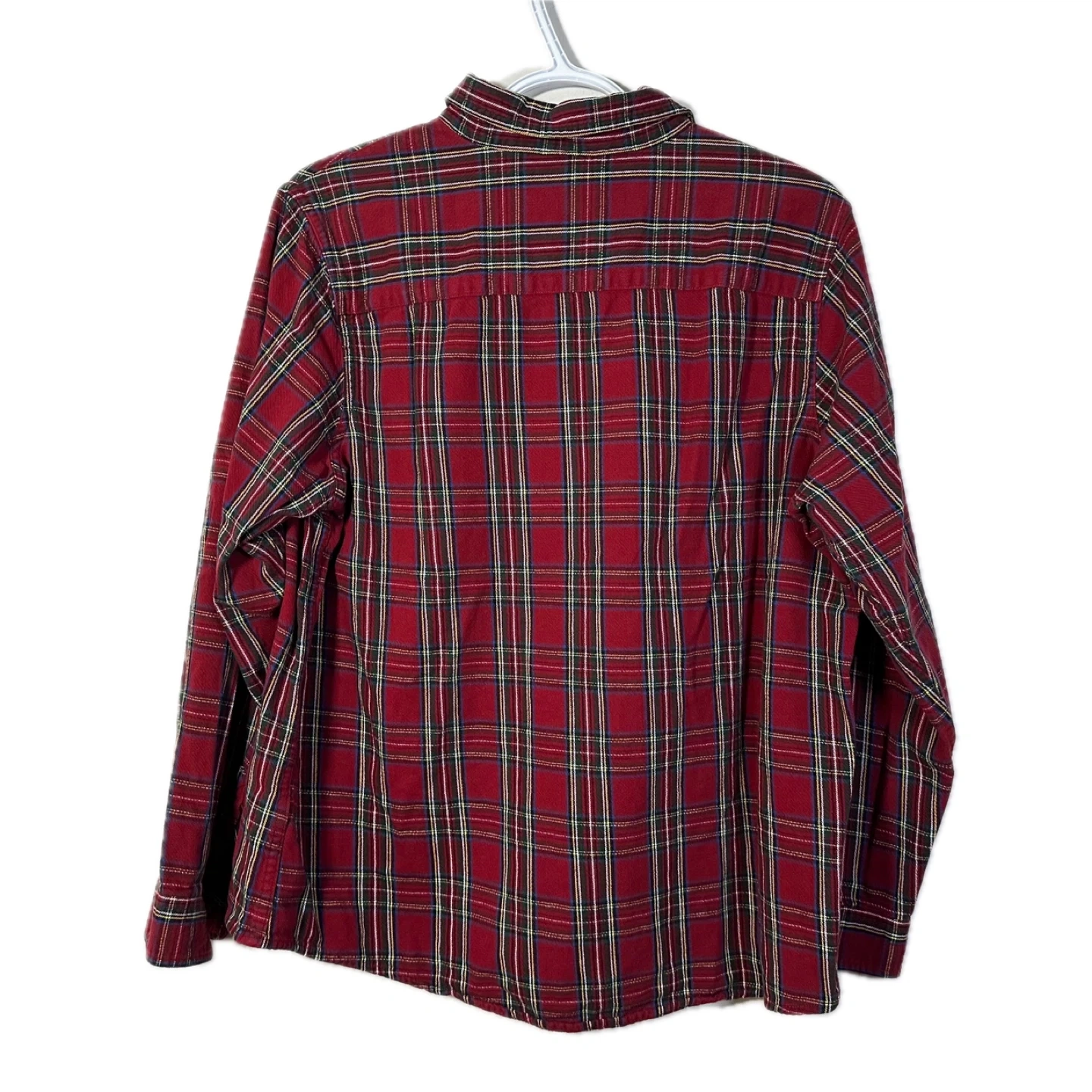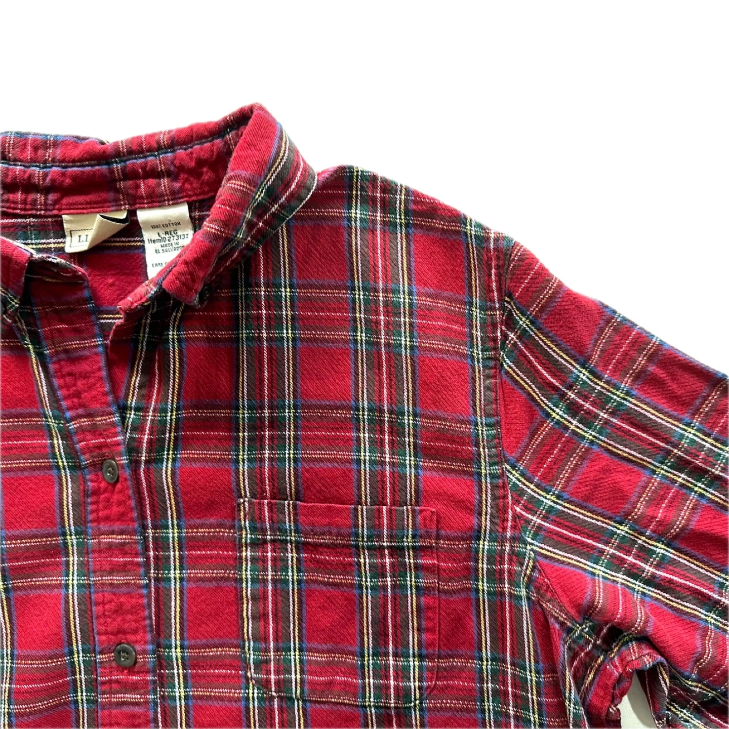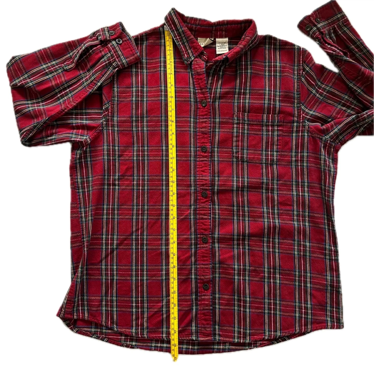 Cozy L.L.Bean flannel shirt in a classic red plaid pattern! This women's size large shirt is perfect for layering or wearing on its own. It's made of comfortable cotton material and is in great condition. A timeless addition to any wardrobe! Condition : Preowned. Good condition. Lightly worn. No stain. No holes. The white part in the photos are only a reflection . The shirt has no flaws. Size : Large Regular Style : Casual Button Down Fit : Regular Armpit To Armpit : 22.75 inch Length From Center Back : 26.5 inch Sleeve : 28 inch Contents : 100% Cotton