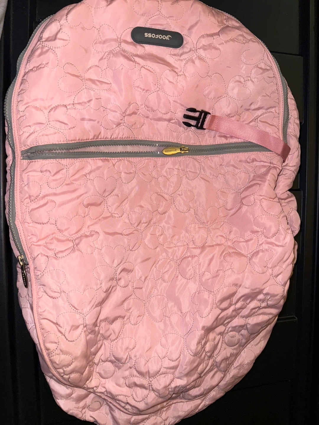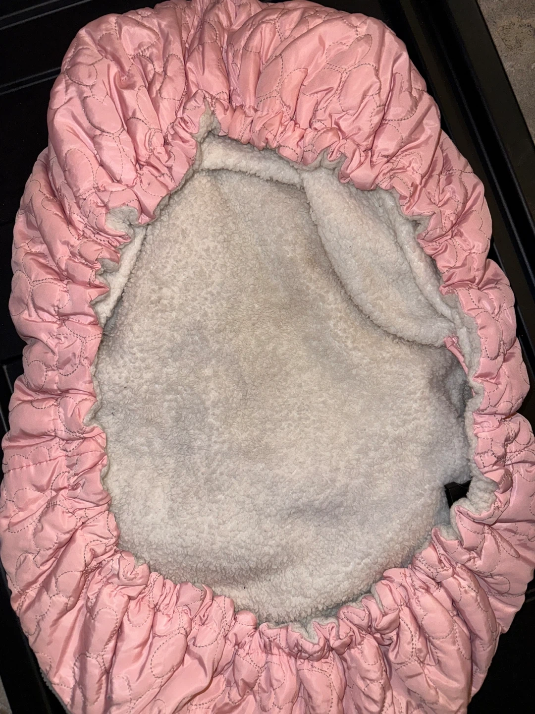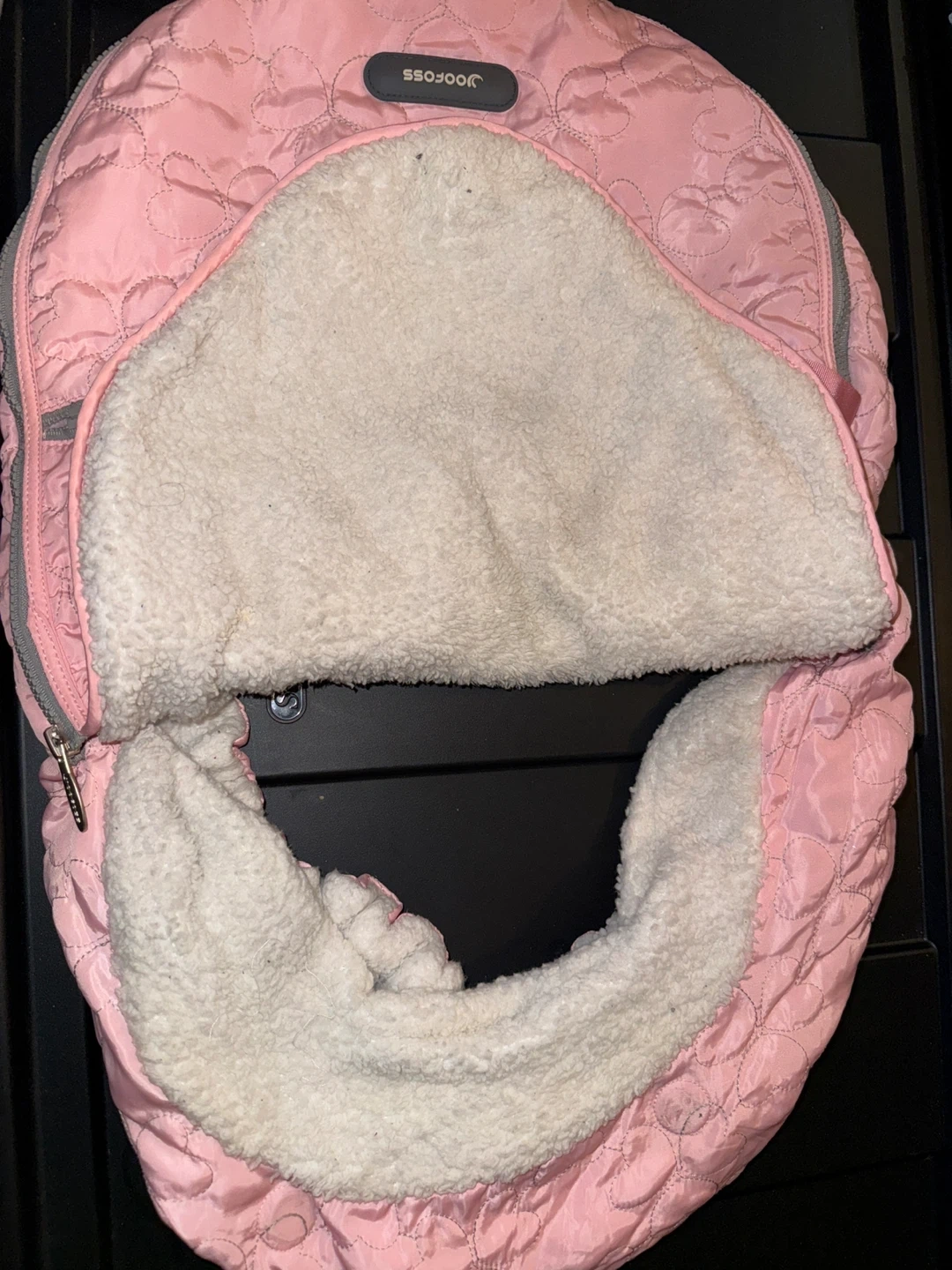 Selling a gently used Joofoss baby car seat cover in pink. It's designed to keep your little one warm and cozy in their car seat during colder weather. The cover features a soft, plush interior and a quilted exterior. Perfect for keeping baby snug on chilly days!