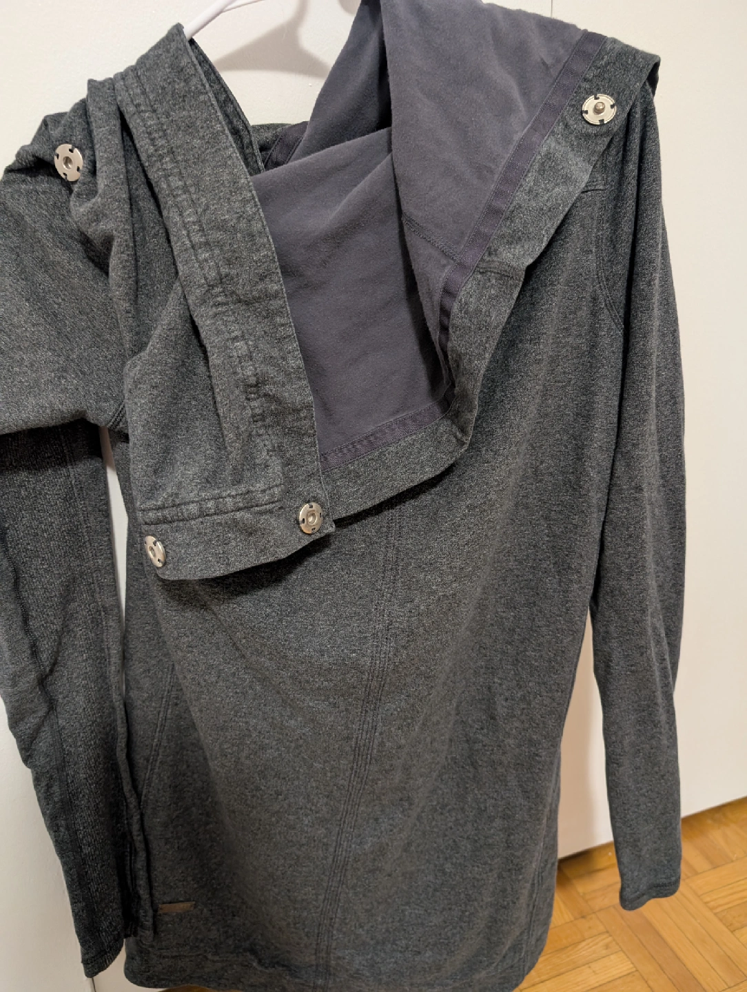 Rare design size 8, with an angular zipper and press buttons on the collar that turn into a cowl when buttoned up. excellent condition no damage, hardly worn. never put in the dryer after a wash.