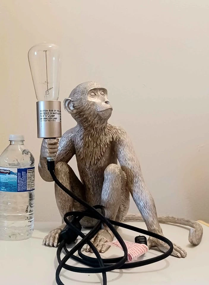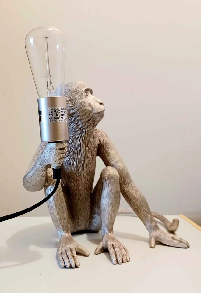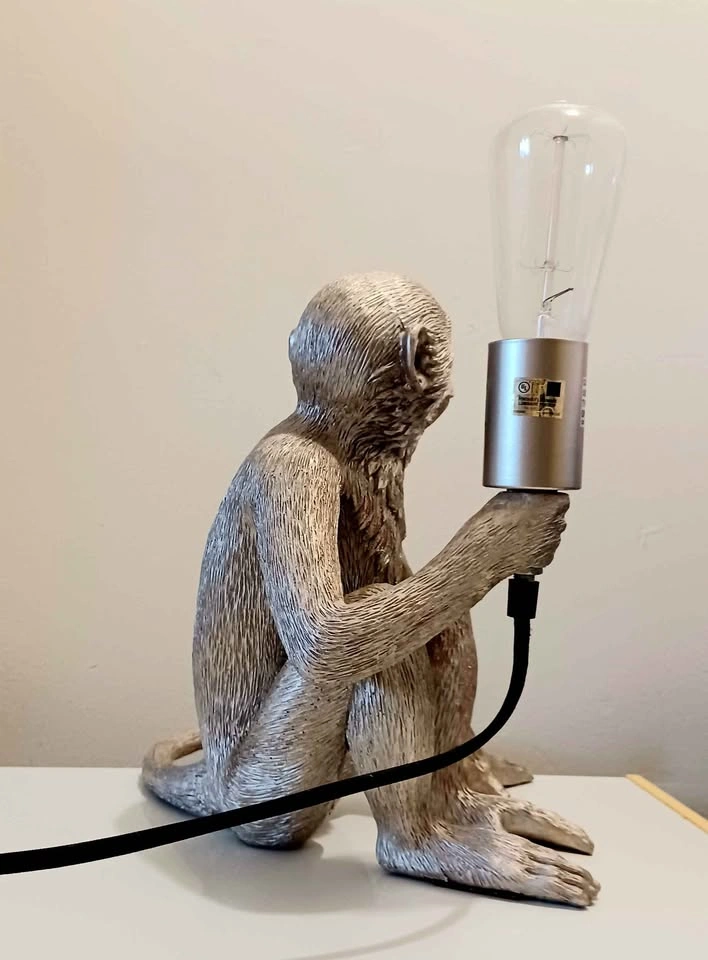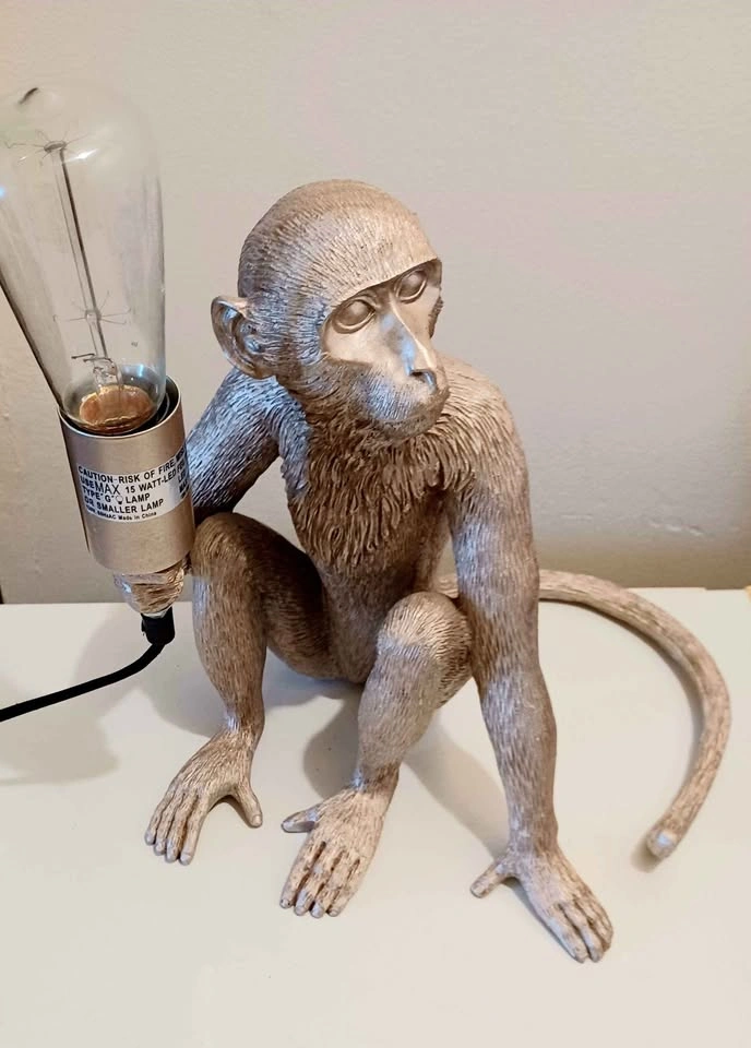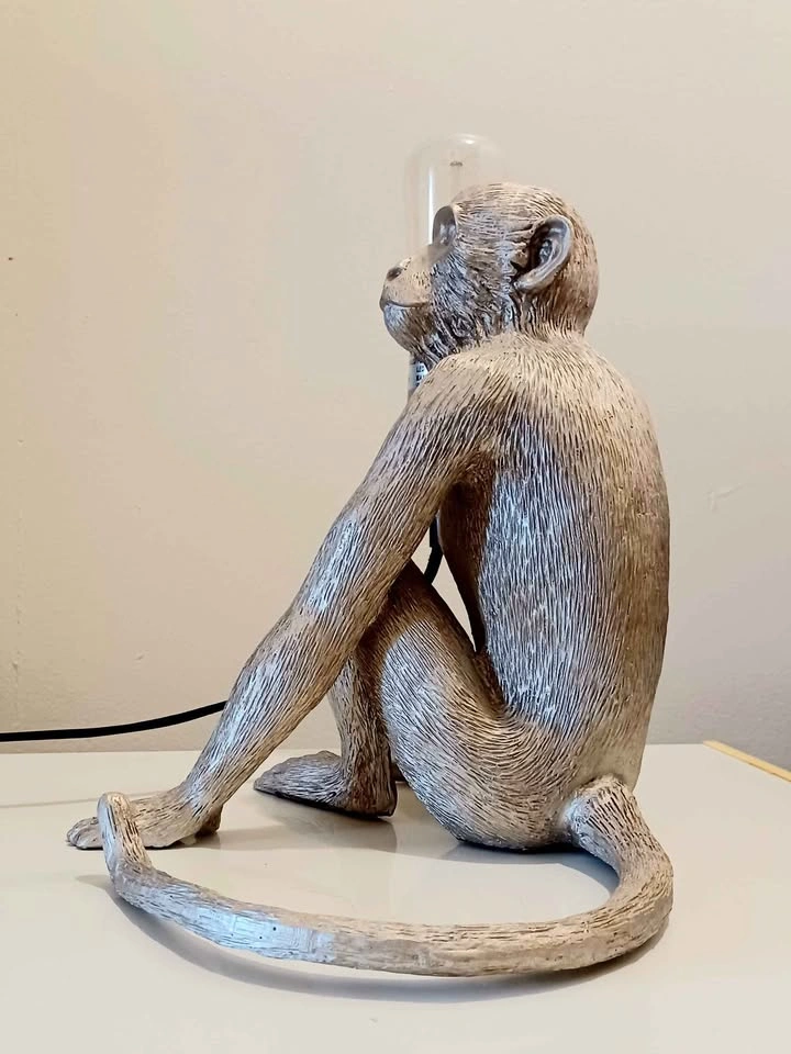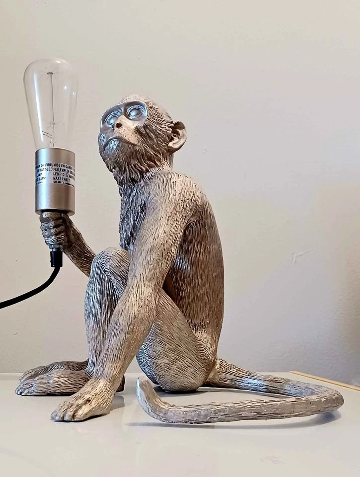 Vtg. Retired, Monkey Statue Rare Figurine, Table Lamp Hand Crafted, Silver Resin Sculpture Decorative, Household, Height : 30 cm Very Good Condition Please check out my other posts