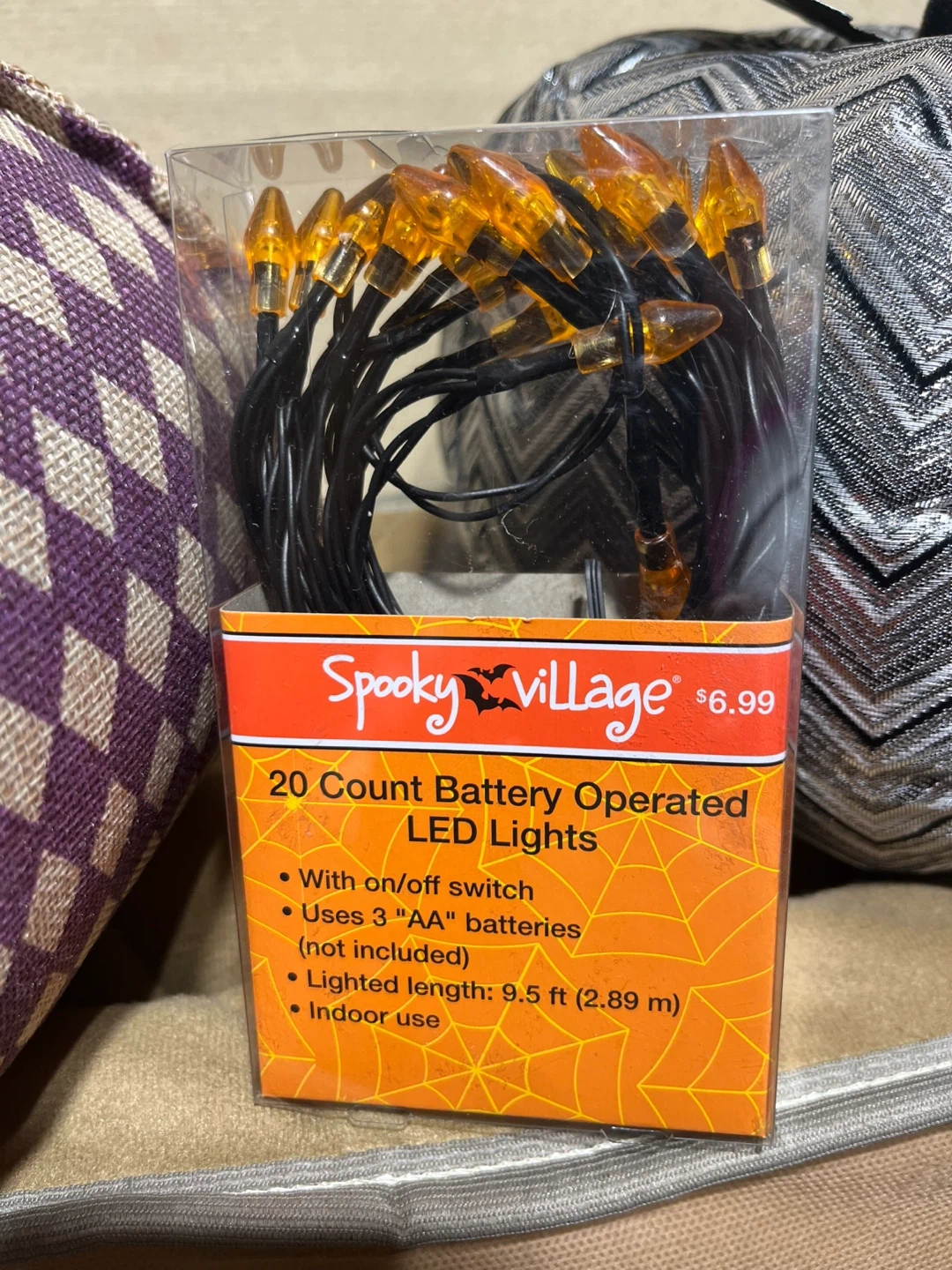 Add some spooky charm to your home with these decorative pumpkins from Spooky Village! Comes with 2 sets of 20 battery-operated LED lights. They're perfect for indoor use and will add a warm glow to your Halloween decor. The lights have an on/off switch and a lighted length of 9.5 ft (2.89 m). Originally priced at $6.99.