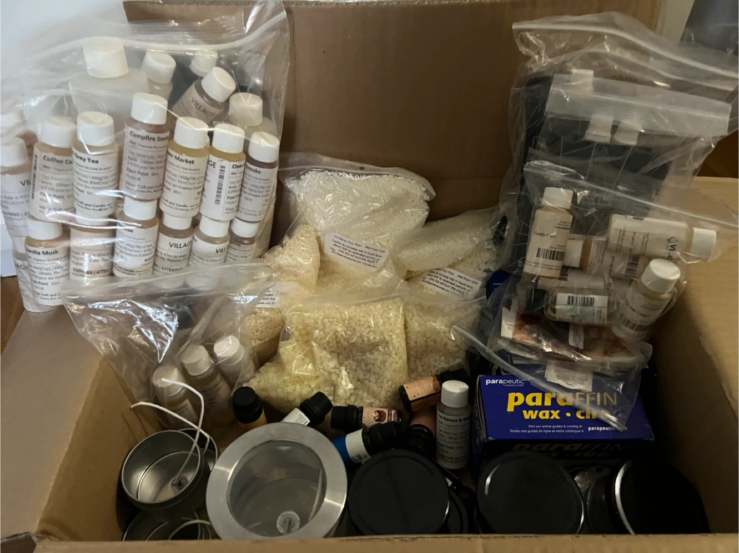 Selling a variety of candle making supplies. Includes container soy and pillar/votive wax, dye, and scent bottles. Lots of different scents to choose from about more than 30 sample scents Pick up only Located near Mt. Pleasant and Eglinton Ave East