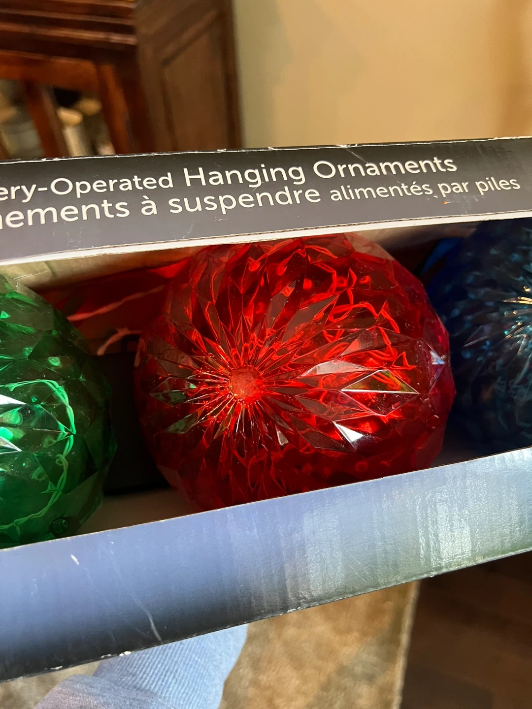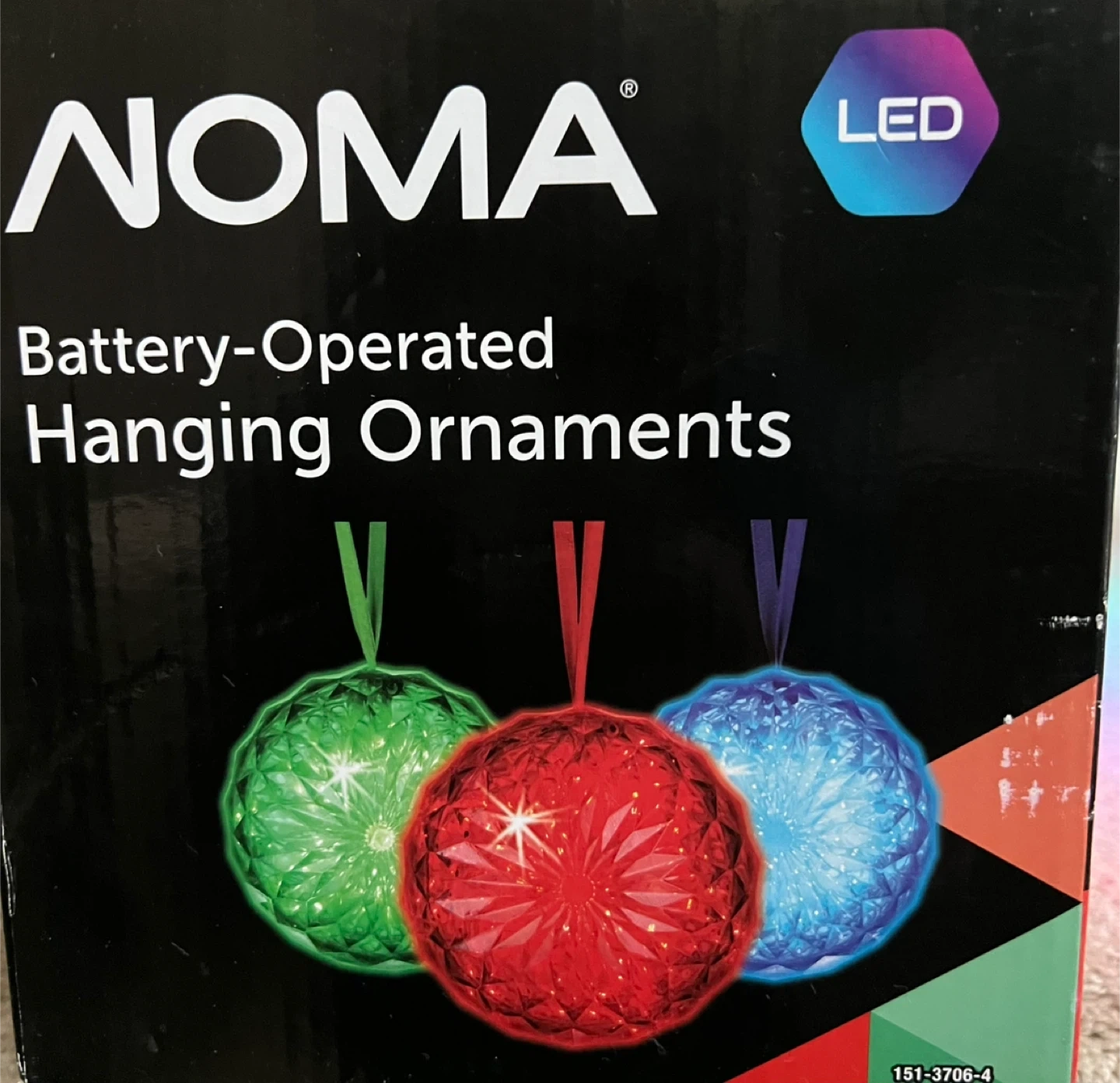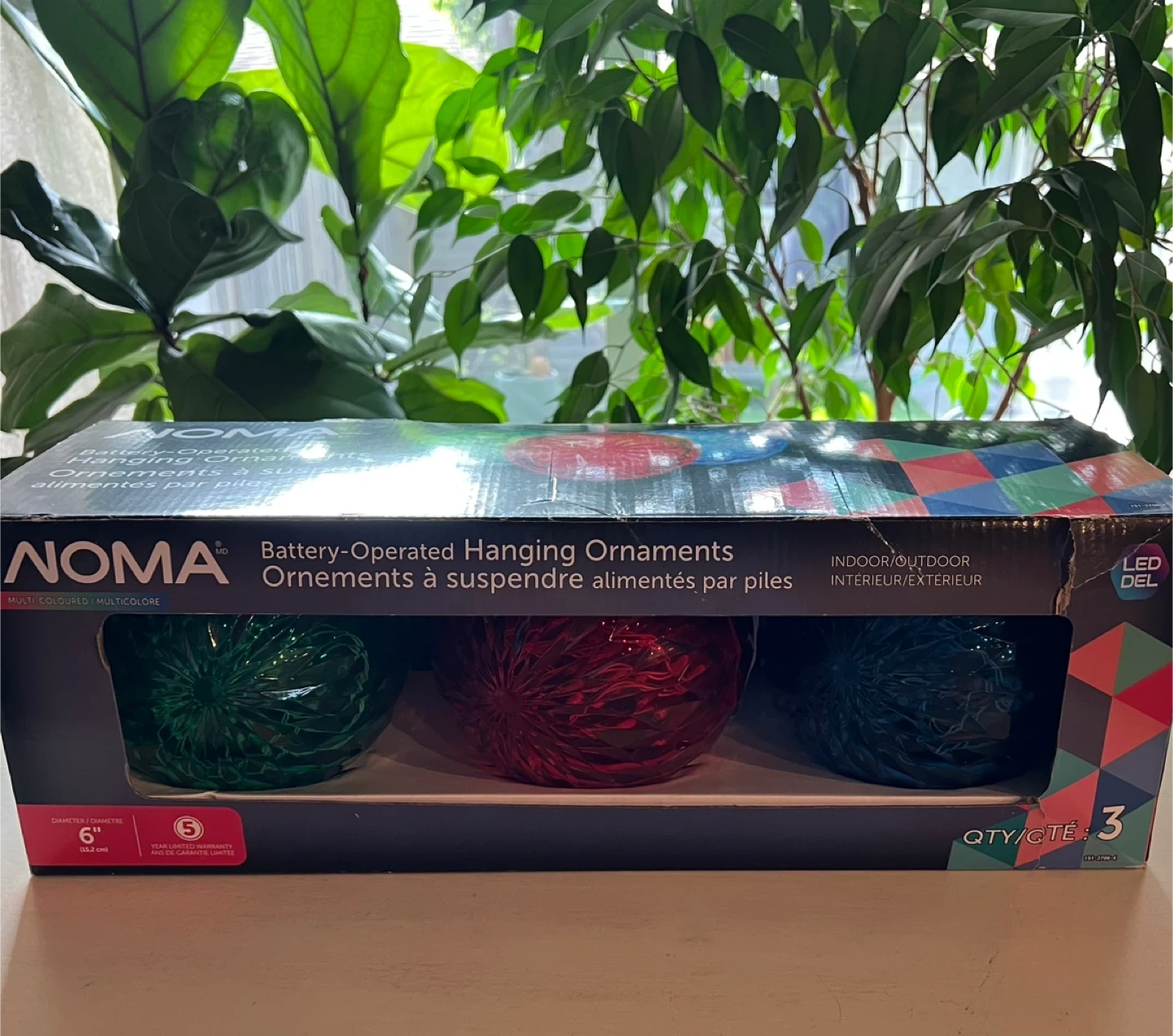 NOMA battery-operated LED hanging ornaments Brand new The set includes three 6-inch ornaments, perfect for indoor or outdoor display Each one takes three AA batteries (you need 9 in total) New batteries are included Automatic on/off timer (6 hours on, 18 hours off) Everything else you need to know is in the photos Asking $10 Interested? Message me and please check my other listings…