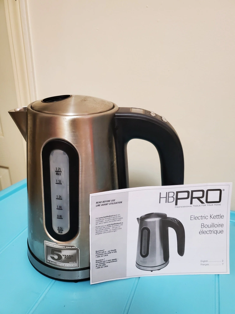 Selling a used HB Pro electric kettle. It has a 1.7L capacity. l bought it from T&T 7 years ago. Perfect for quickly boiling water for tea or coffee!