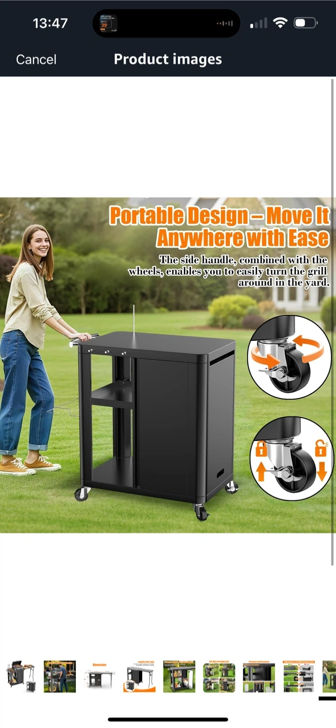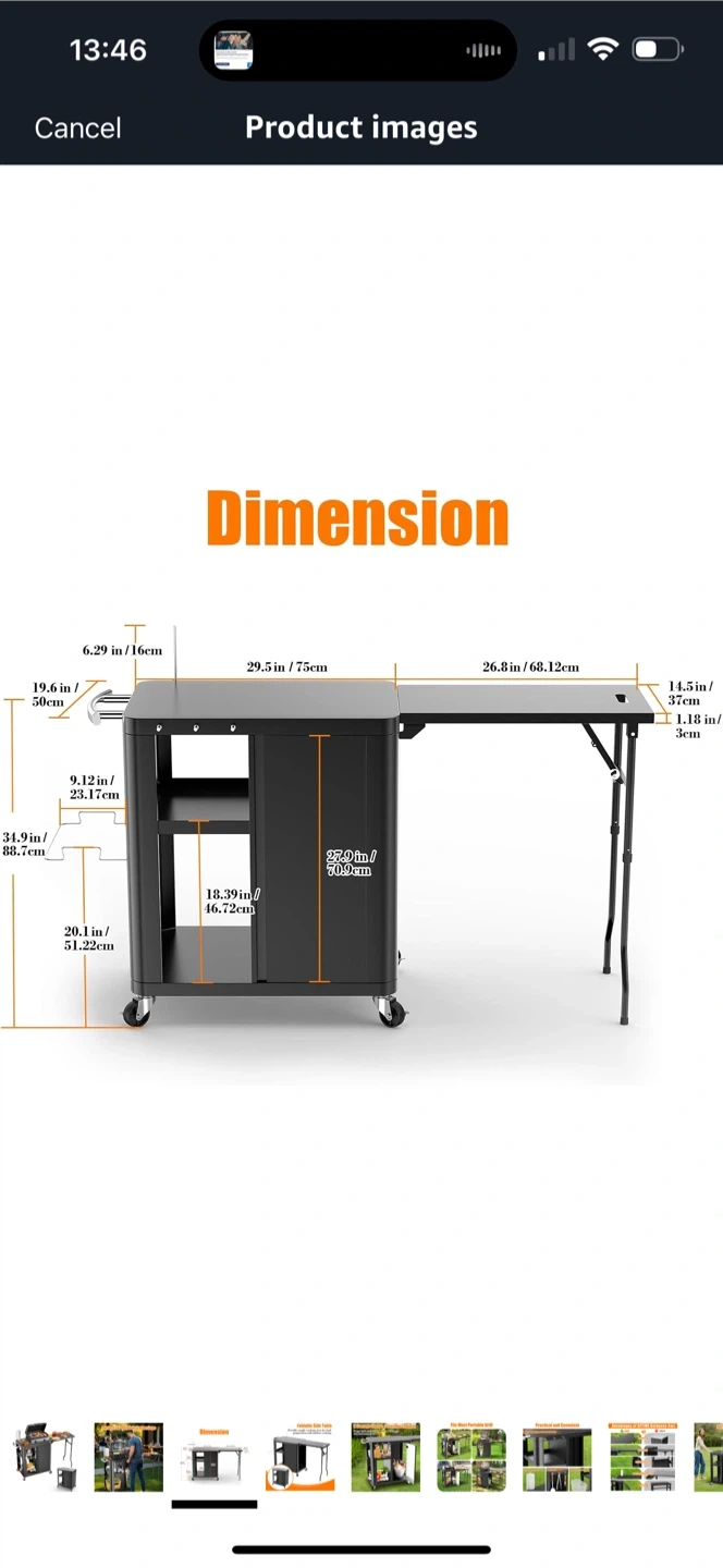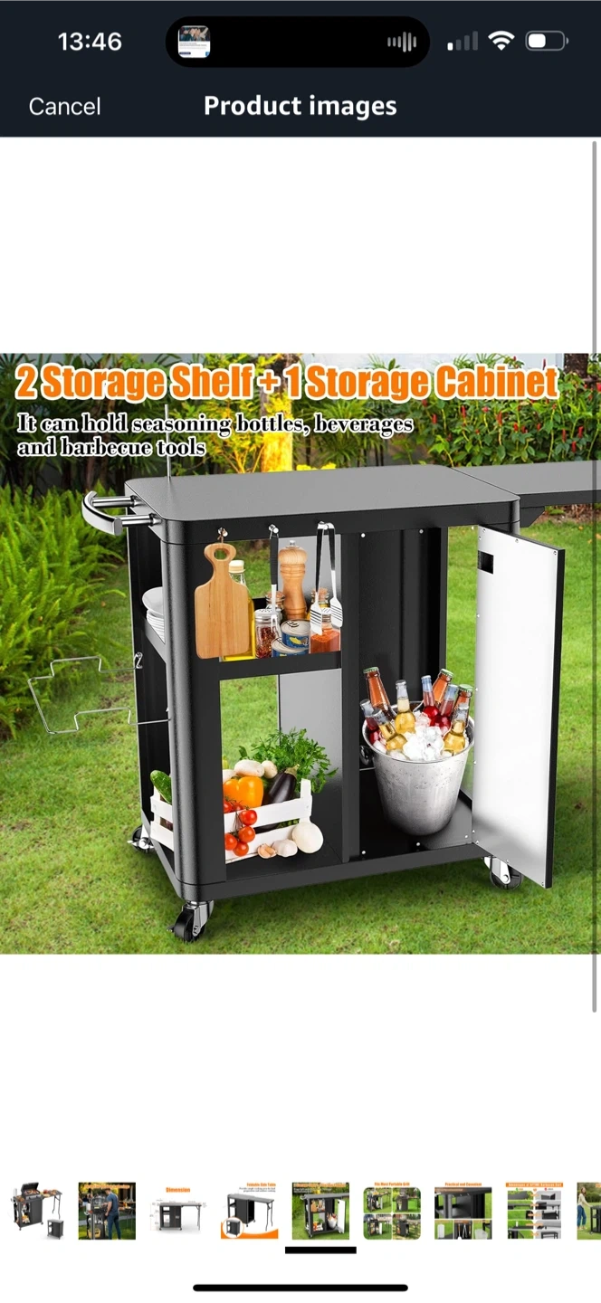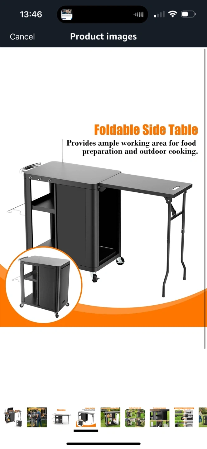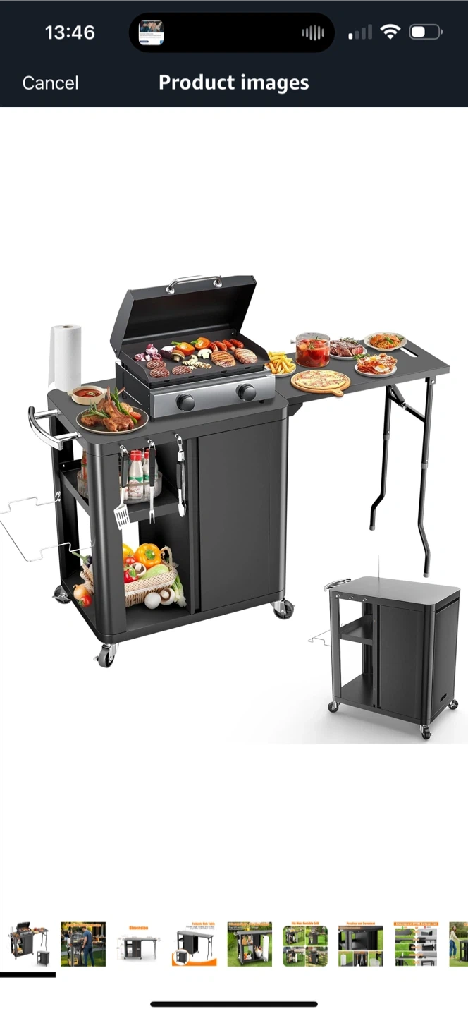 Brand new inbox GFTIME 56.3"x14.6"x35" Grill Cart, Pizza Oven Stand, Mobile Grill Table for Outdoor BBQ, Work Trolley with Foldable Side Table, Hooks, Storage Shelf and Cabinet,Outdoor Serving Trolley, Kitchen Island