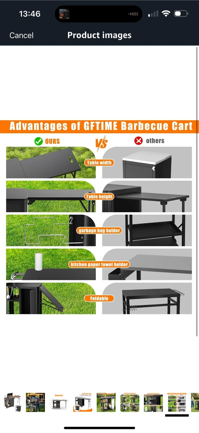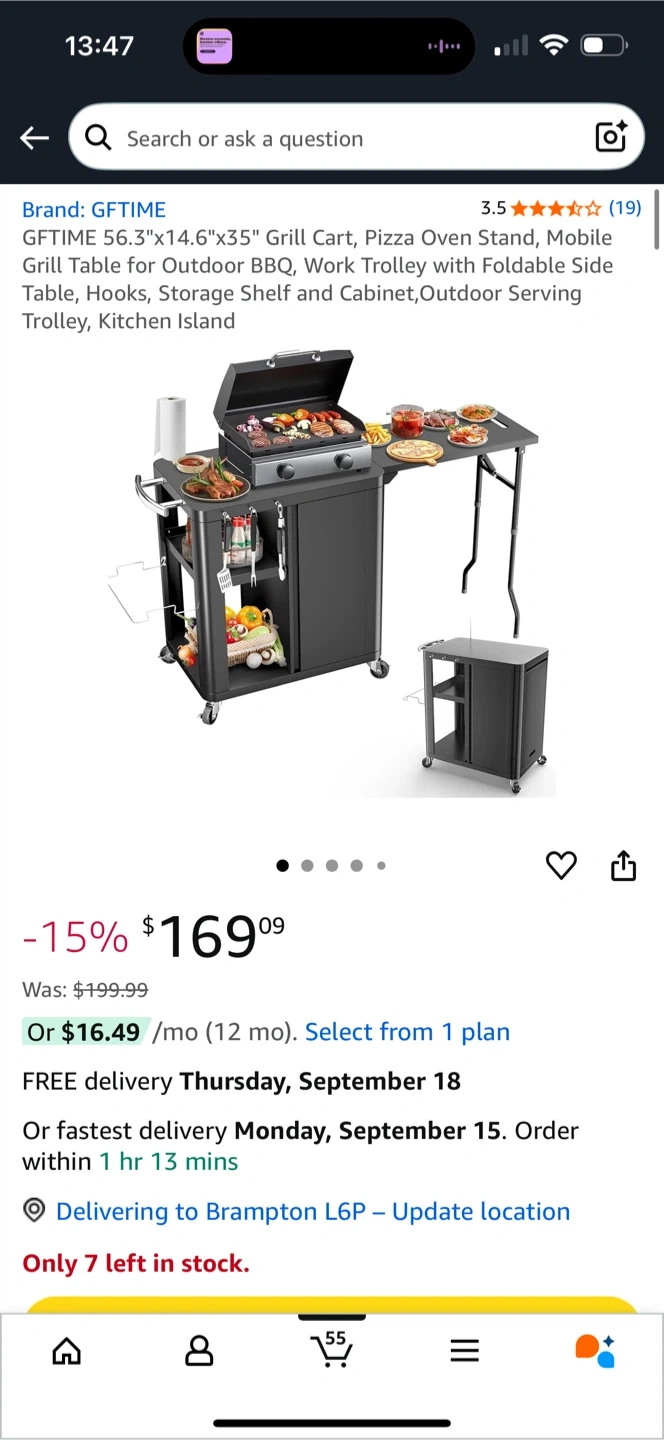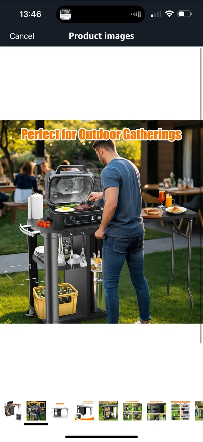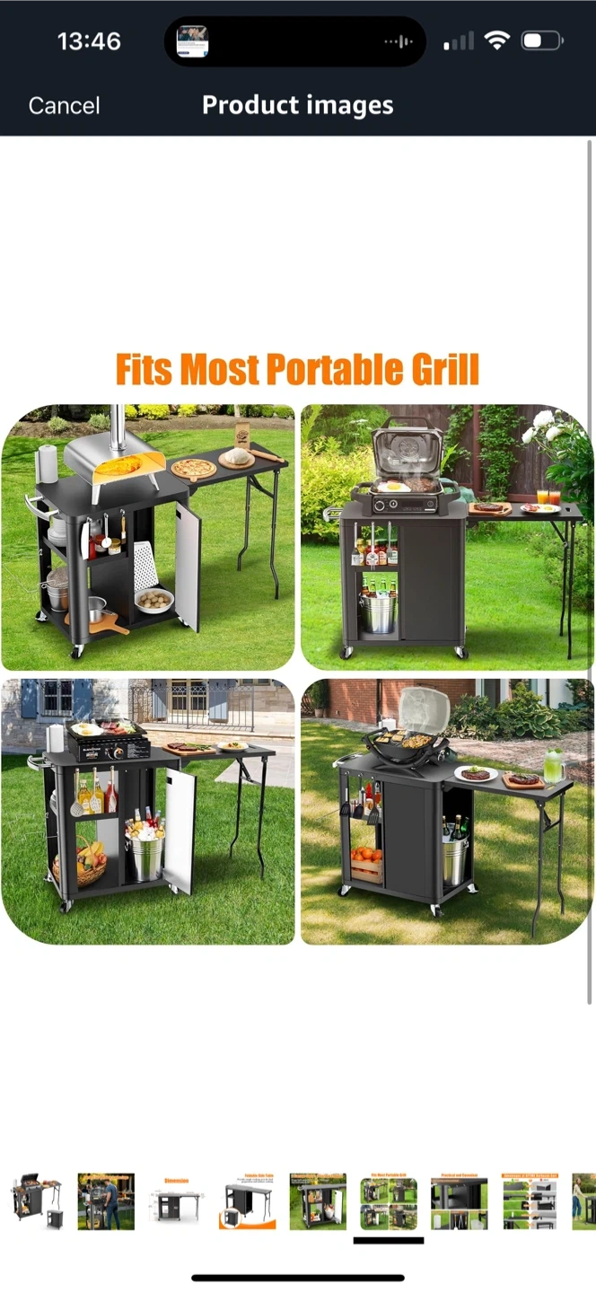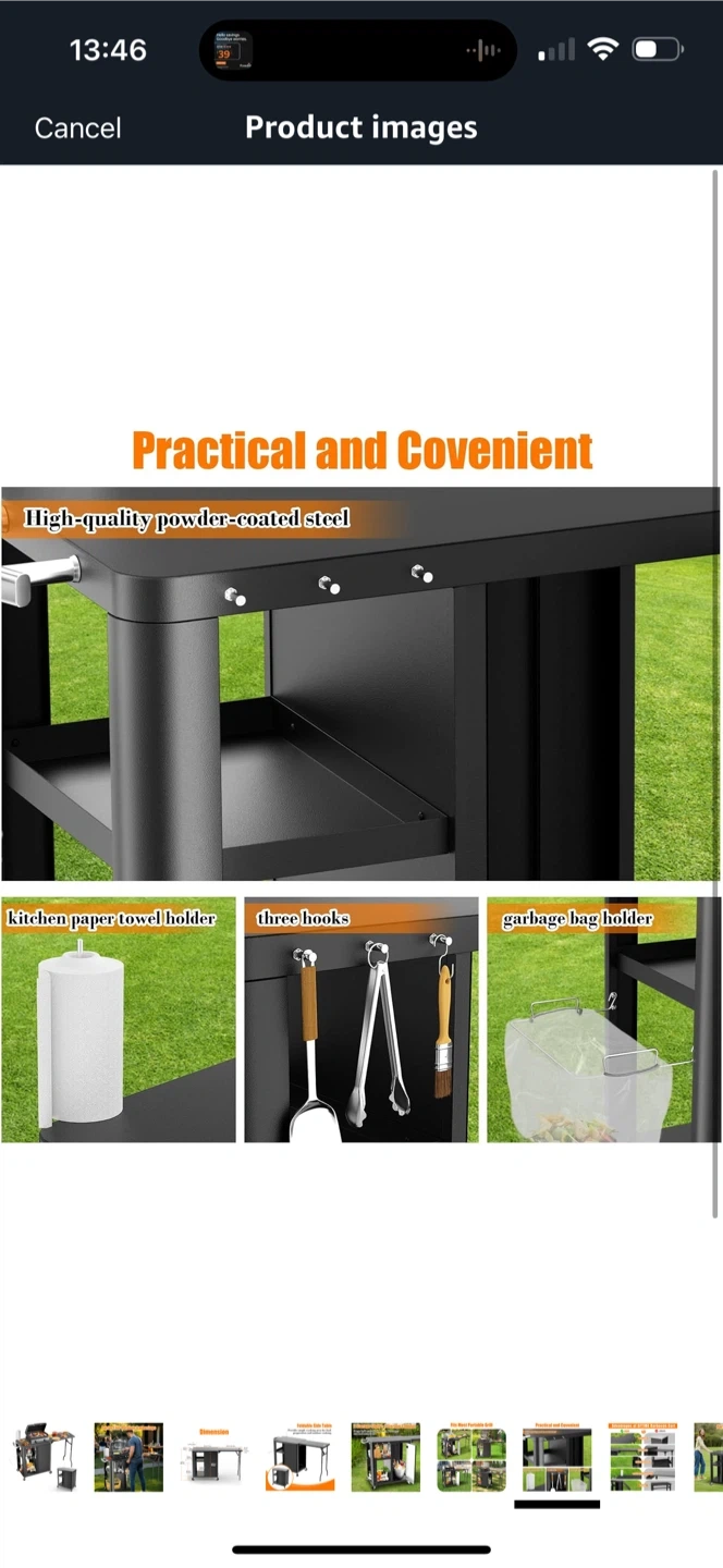 Brand new inbox GFTIME 56.3"x14.6"x35" Grill Cart, Pizza Oven Stand, Mobile Grill Table for Outdoor BBQ, Work Trolley with Foldable Side Table, Hooks, Storage Shelf and Cabinet,Outdoor Serving Trolley, Kitchen Island