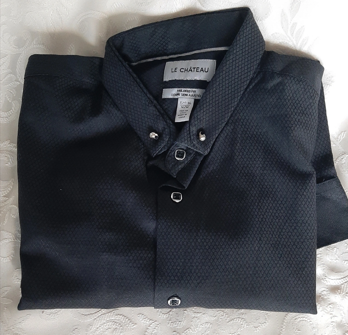 I'm selling a Le Chateau dress shirt in size 15½ / 36. It's a stylish black colour and in great condition! Perfect for any occasion