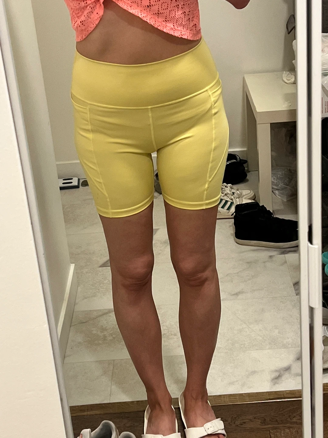 Each 4$ or all 4 for 12$ = 3$ each 1 jeans shorts with star on the Back, 1 shorts with white stripes, 1 lemon yellow leggings, 1 yellow bike shorts 2 star shorts and leggings new with tags, 2 worn only few times