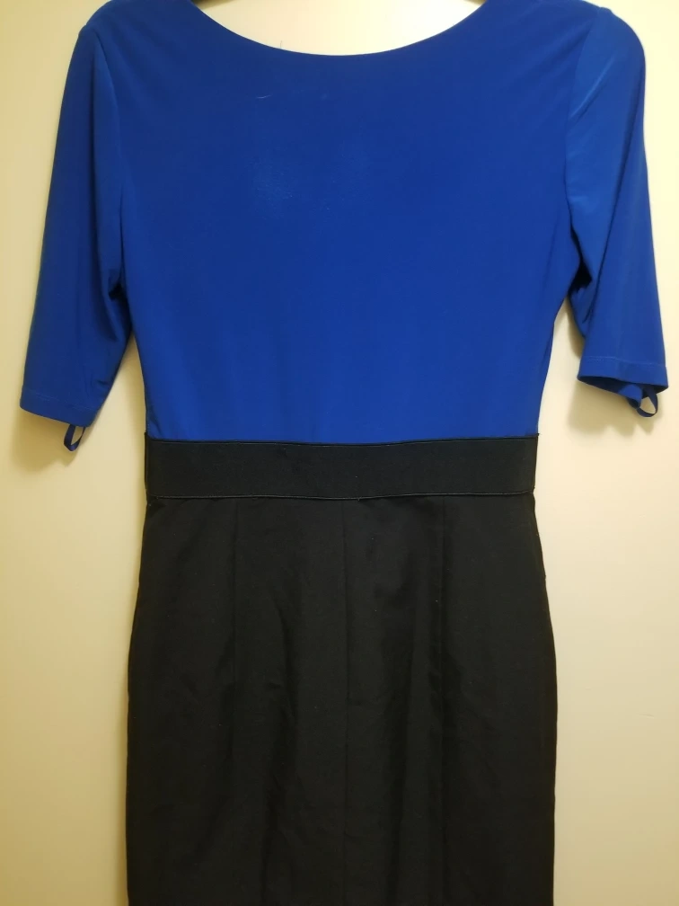Selling a lovely Jones New York dress in size 10. It features a vibrant blue top and a classic black bottom, perfect for any occasion! The dress is in great condition and ready for a new home
