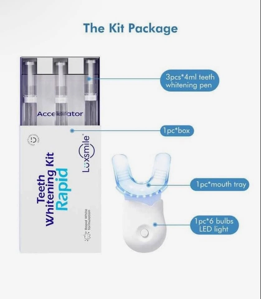 Professional Teeth Whitening Kit- Luxsmile home teeth whitening light kit adopts 6 powerful LED bulbs to help accelerate our teeth whitener gel to break-up and dissolve stubborn stains caused by food, wine, smoking and aging Comfortable & Sensitive Teeth Friendly- With gentle, effective and non-sensitive ingredients that dentist do to whiten your teeth, our premixed whitening gel syringes are safe to tooth gums and enamel without stimulating your tooth nerves Convenient & Efficient Whitening