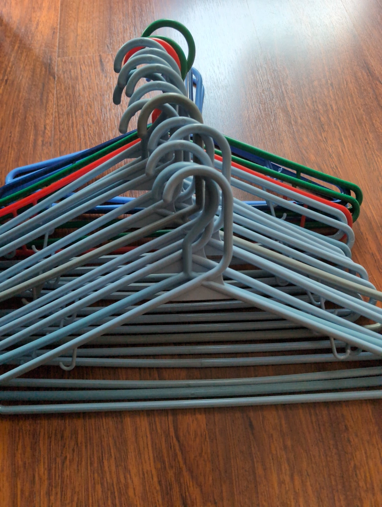A bunch of clothes hangers in assorted colours. Great for organizing your closet!