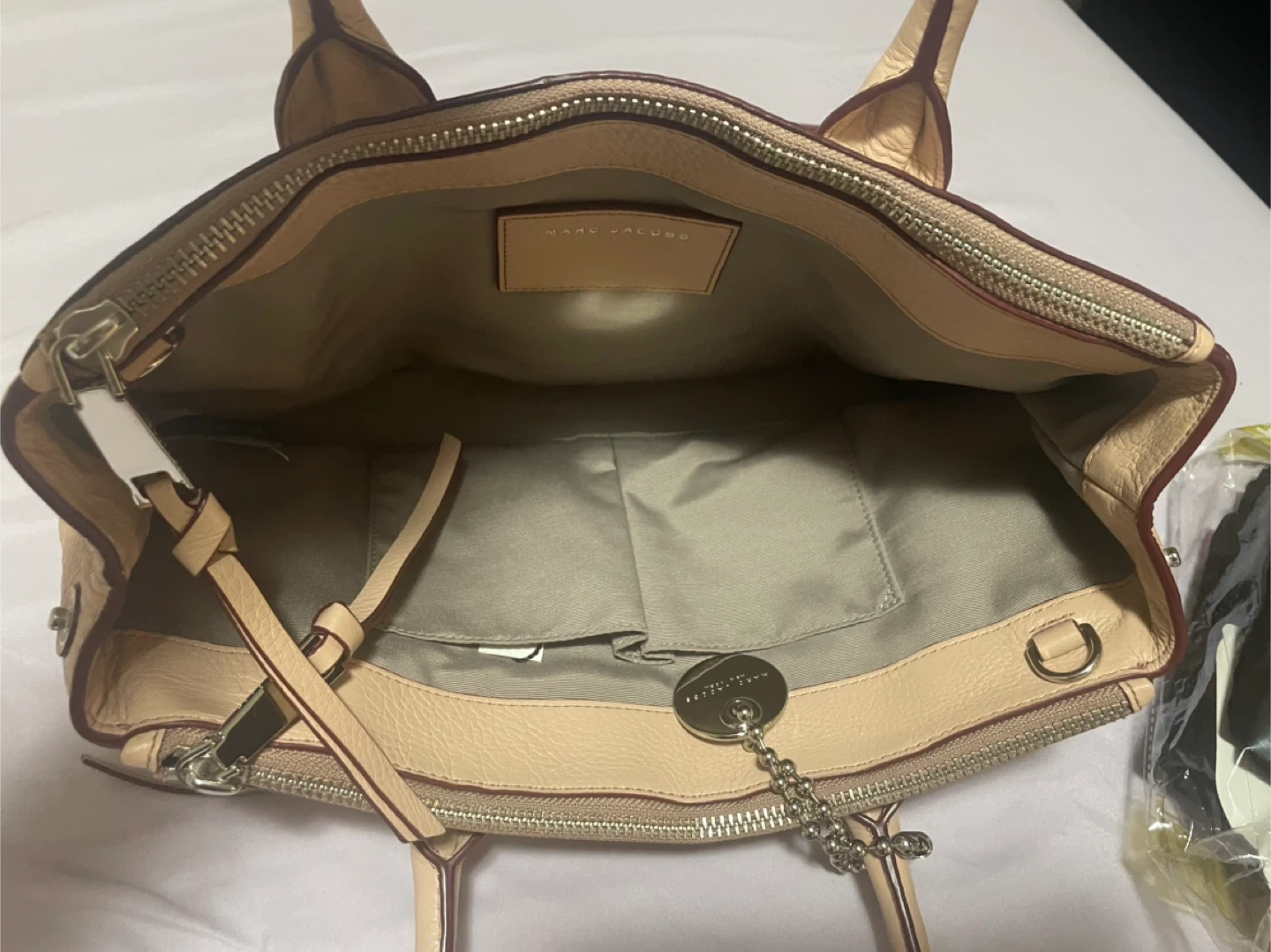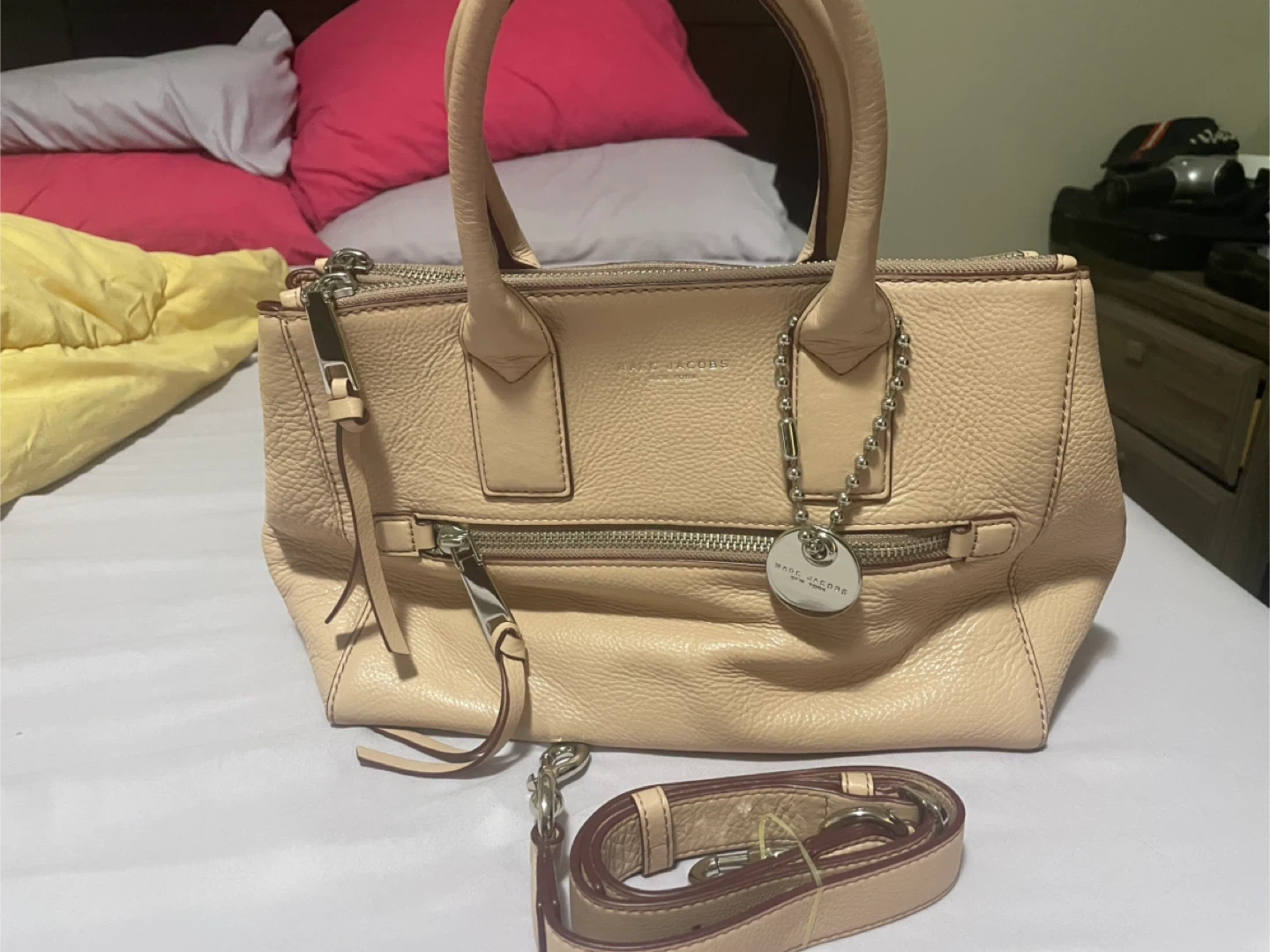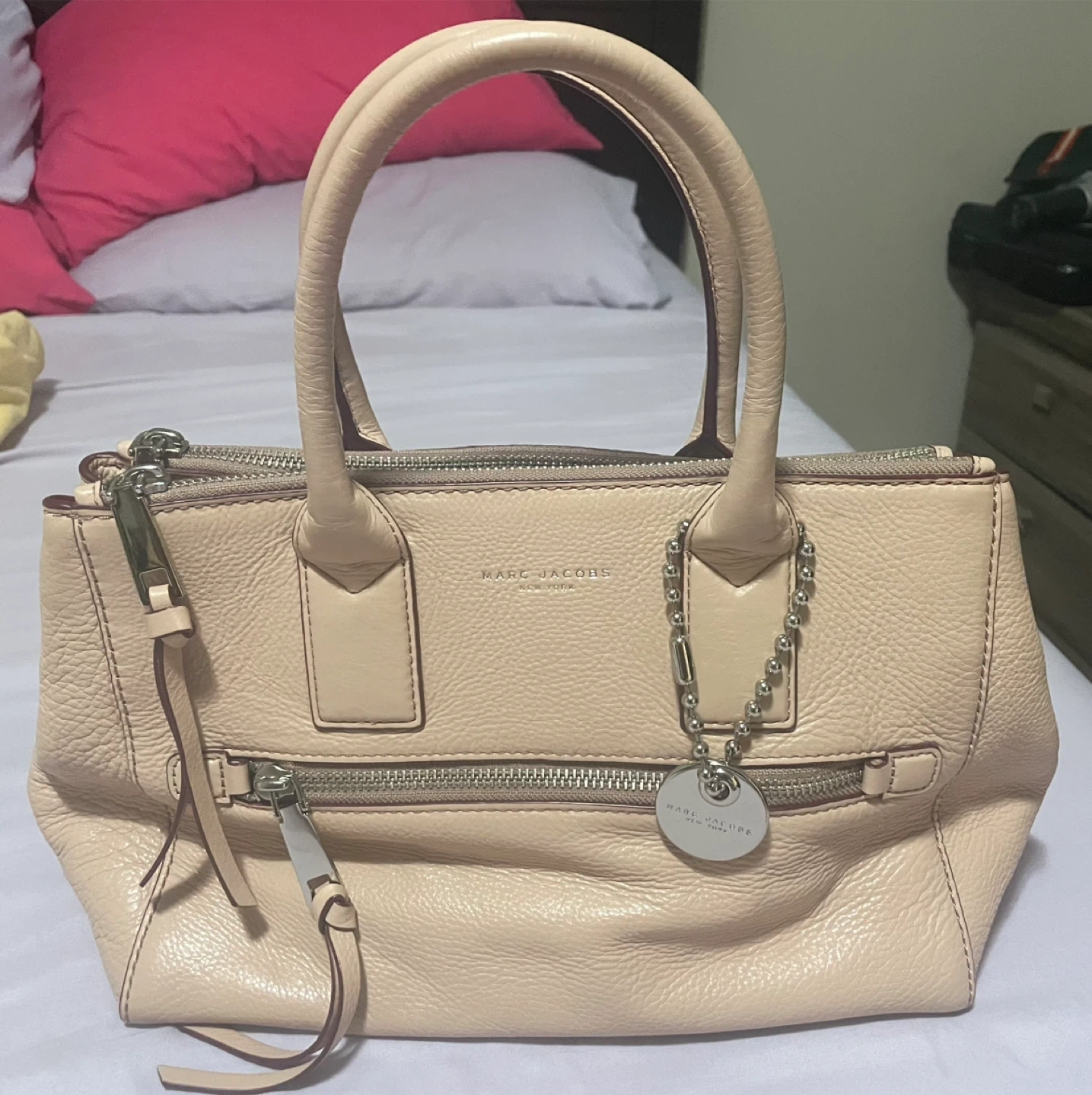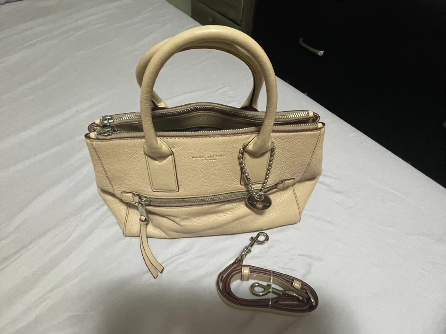 Selling a Marc Jacobs satchel in a lovely beige color! It's made of leather and comes with an additional strap. It's in great condition and ready for a new home