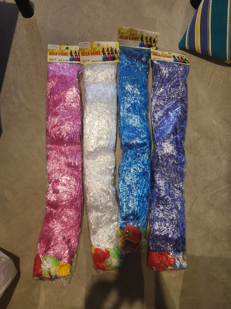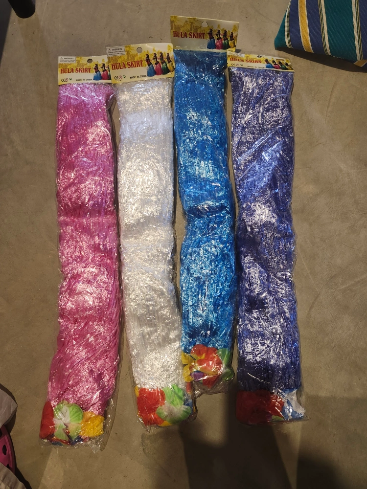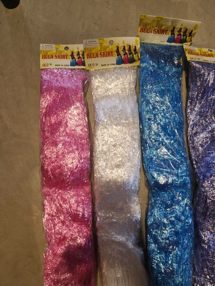 $18 each Get ready to hula! I have these fun hula skirts available in pink, white, blue, and purple. Perfect for parties, costumes, or just adding a bit of tropical flair to your day