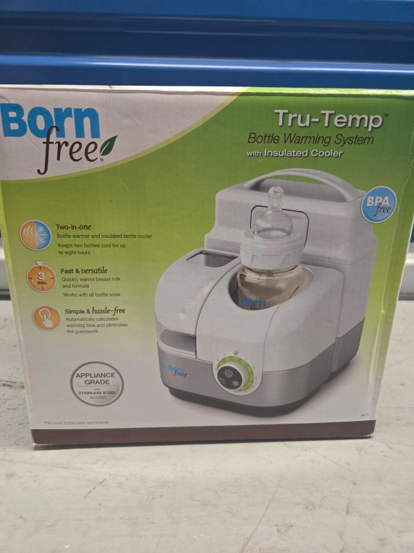 Selling a Born Free Tru-Temp Bottle Warming System with Insulated Cooler. It's a two-in-one bottle warmer and insulated bottle cooler that keeps two bottles cool for up to eight hours. It's fast and versatile, quickly warms breast milk and formula in minutes and works with all bottle sizes. It is simple and hassle-free and automatically calculates warming time and eliminates the guesswork