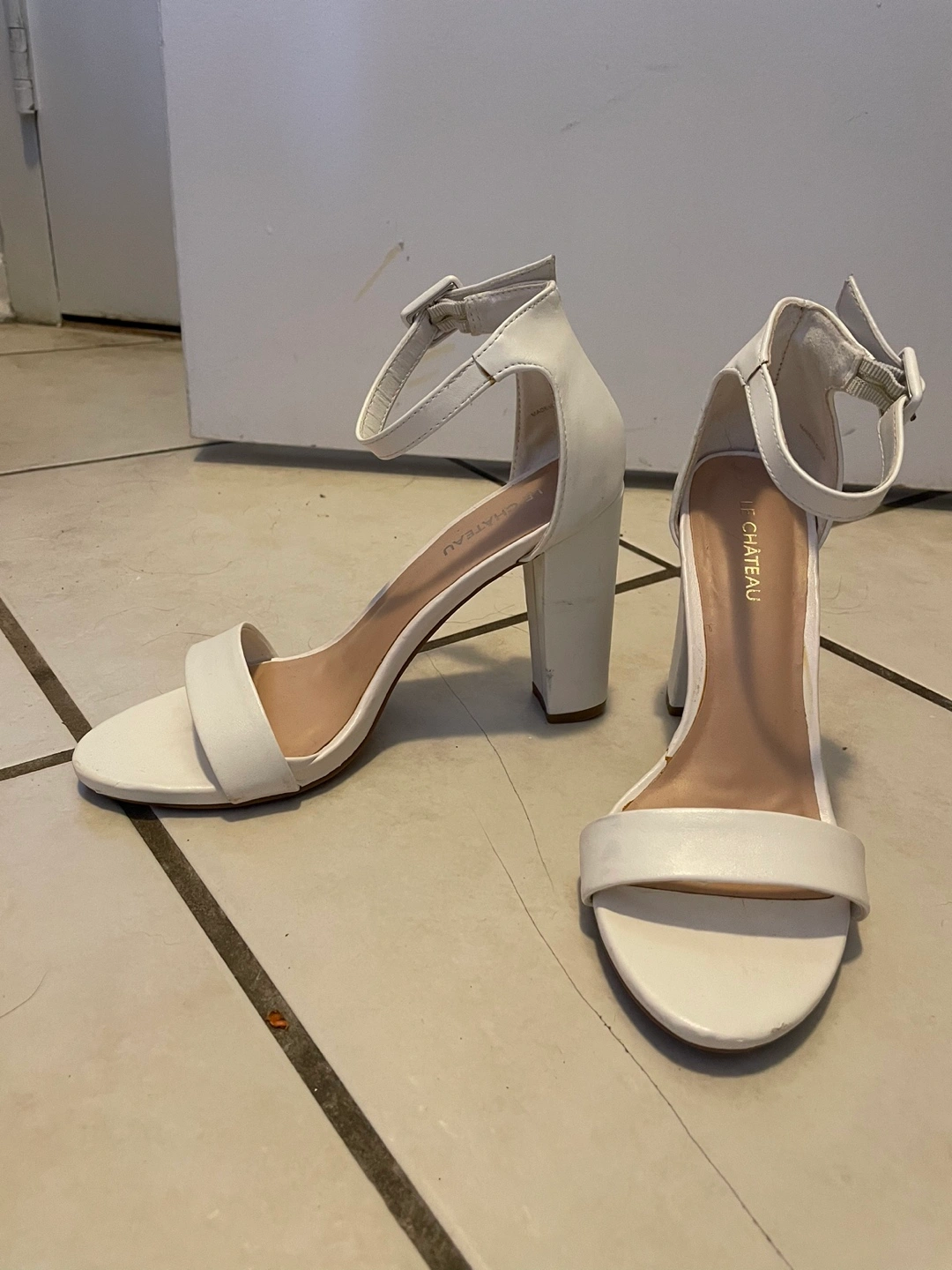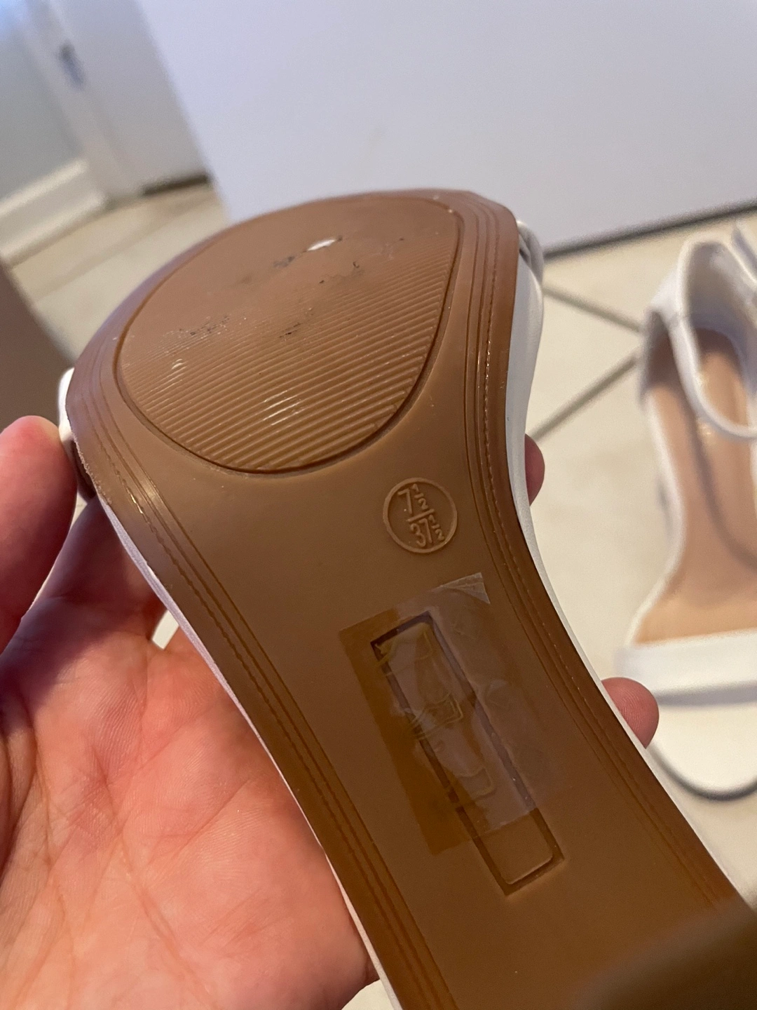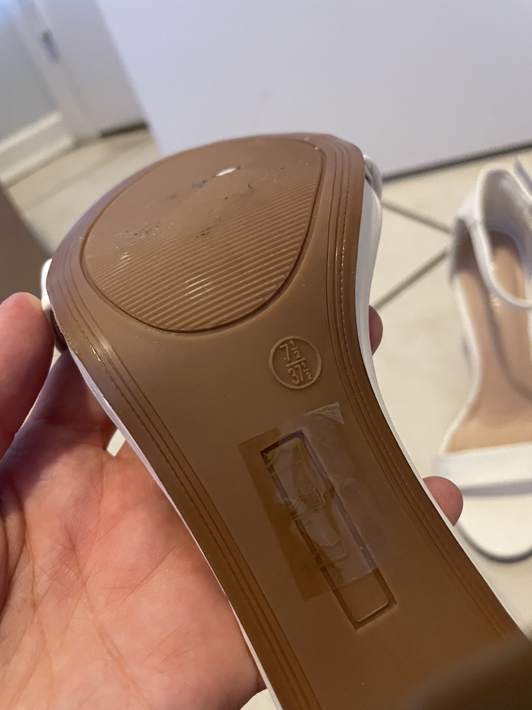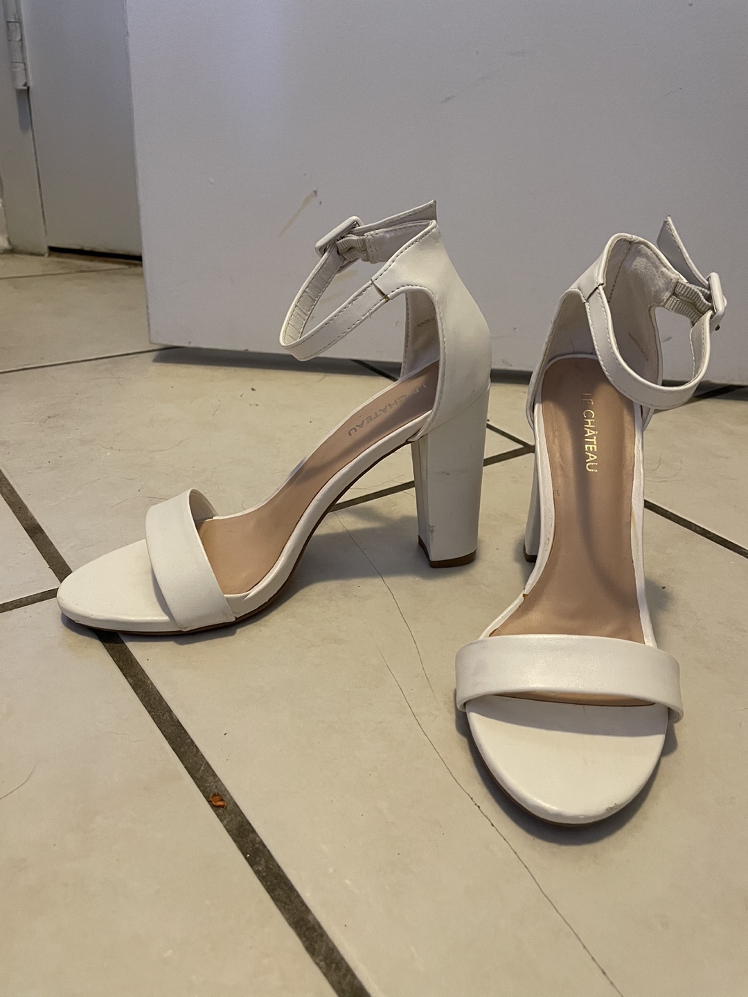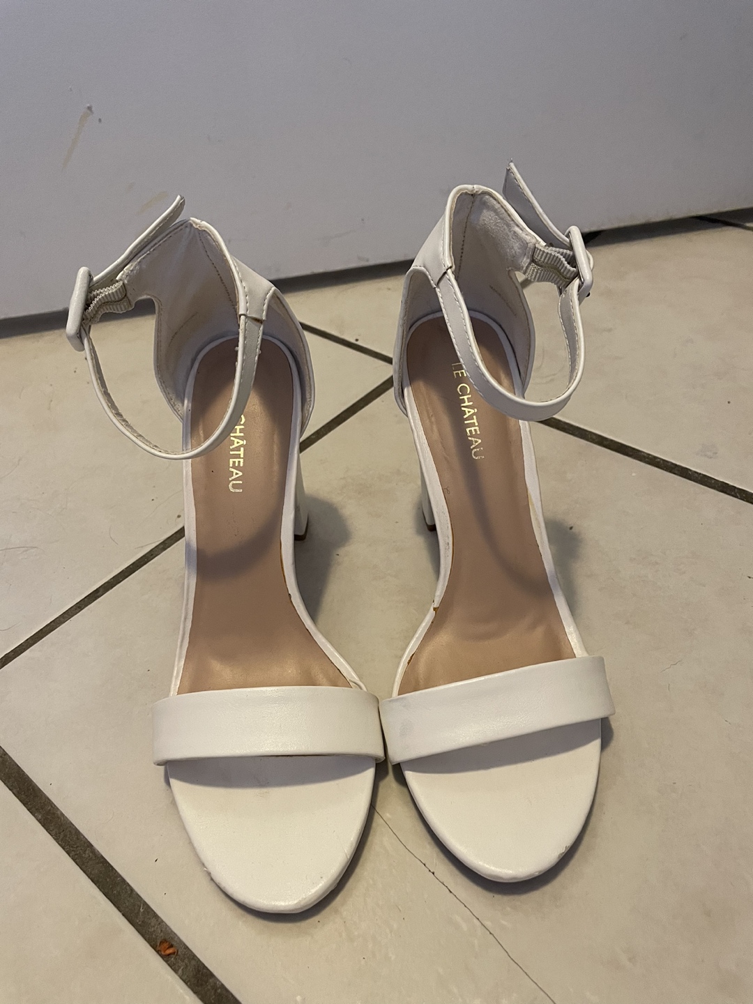 Closet cleanout, prices are negotiable! Check out my other postings, open to bundling :) White strappy heels size 7 1/2, amazing for spring & summer dresses ✨ Slight scuff on the back of the heel, might be able to come off with magic eraser! E-Transfer or Cash Pick up in queen & dovercourt area