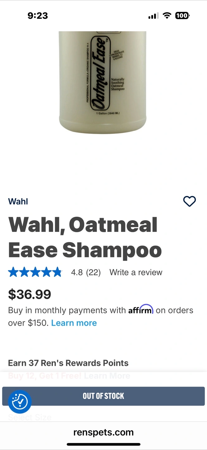 The Oatmeal Ease shampoo is naturally soothing and highly concentrated. The Absolute Silk conditioner contains silk extracts and is also highly concentrated. Great for a grooming salon or if you do grooming at home! $25 each!