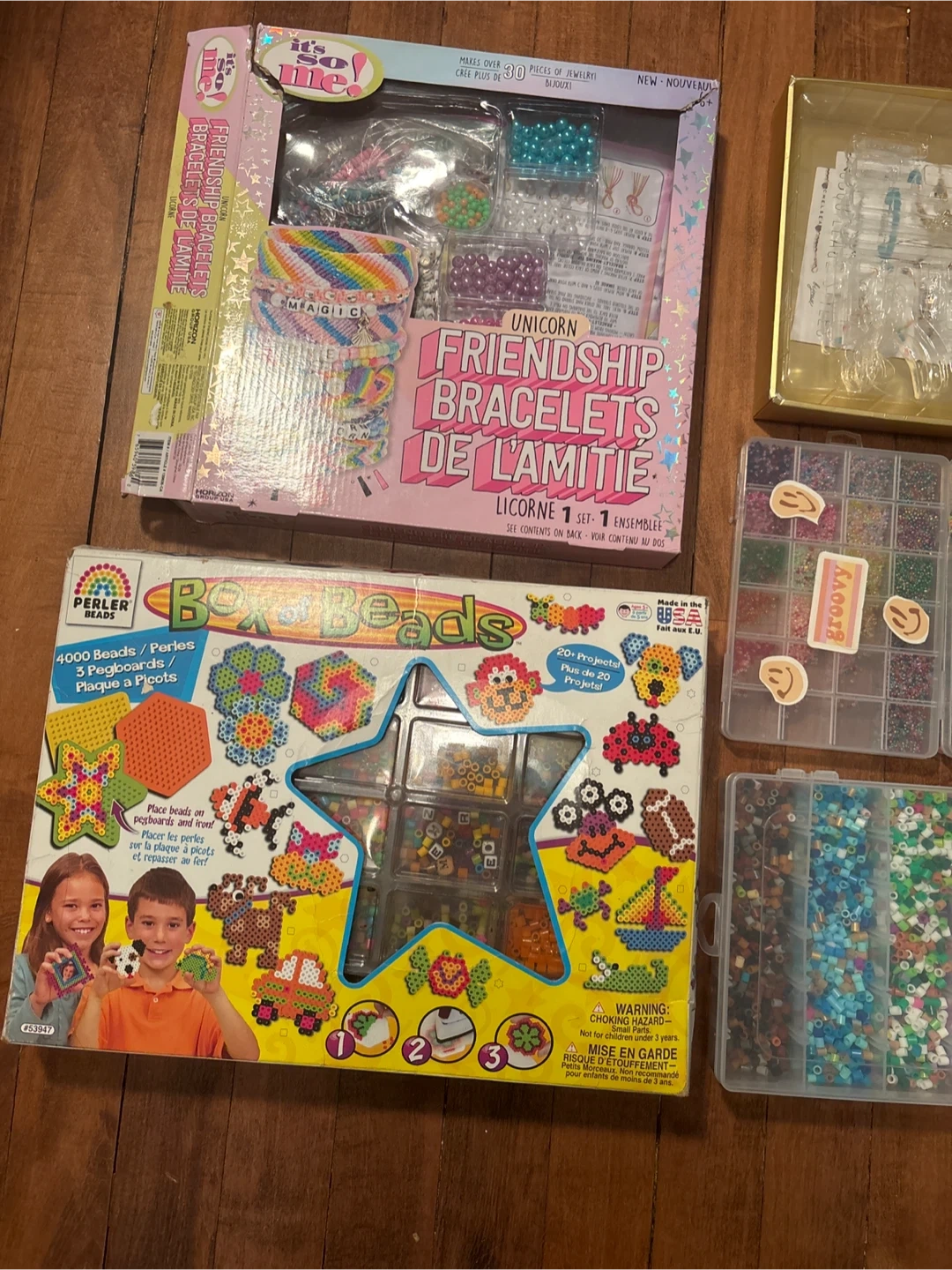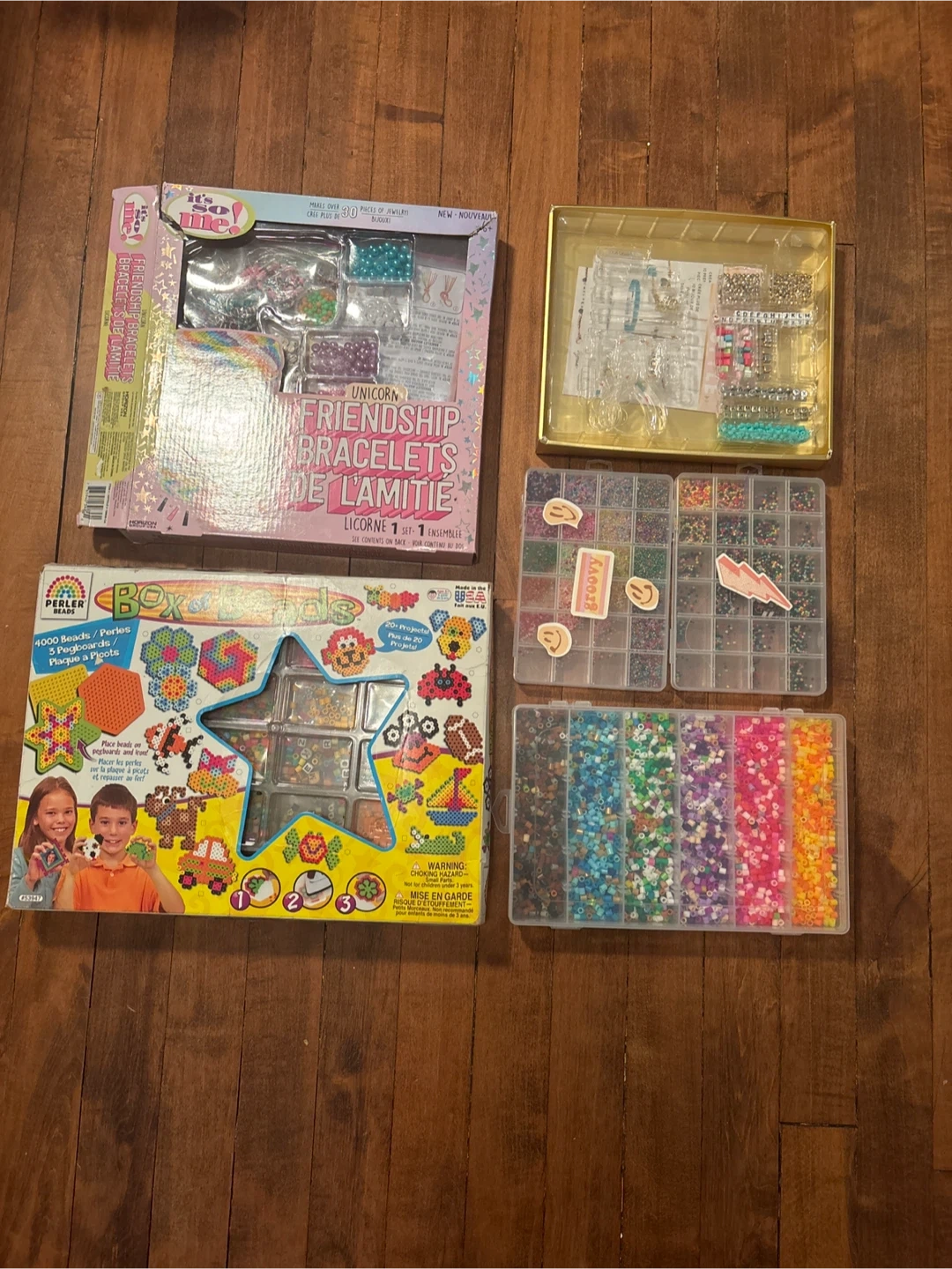 Selling a collection of bead craft kits! Includes an It's So Me! Unicorn Friendship Bracelet kit and a Perler Beads Box o' Beads set. Perfect for crafting and creating fun designs!