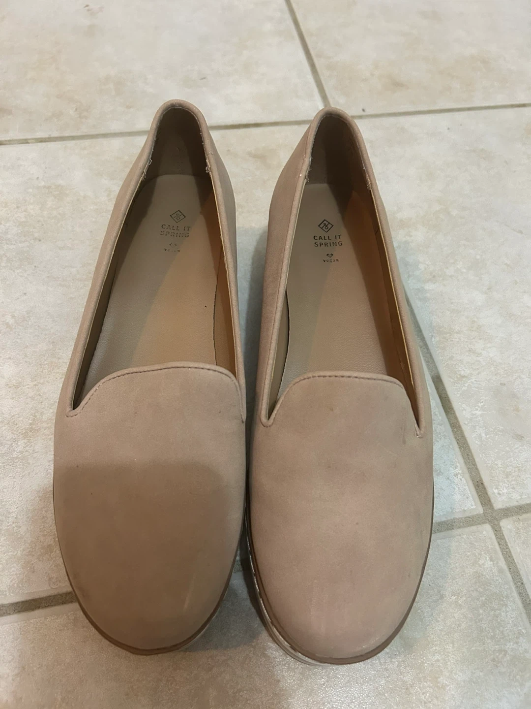 Selling a pair of Call It Spring loafers. They're a tan colour and are vegan! They have a platform sole. Size 7.5