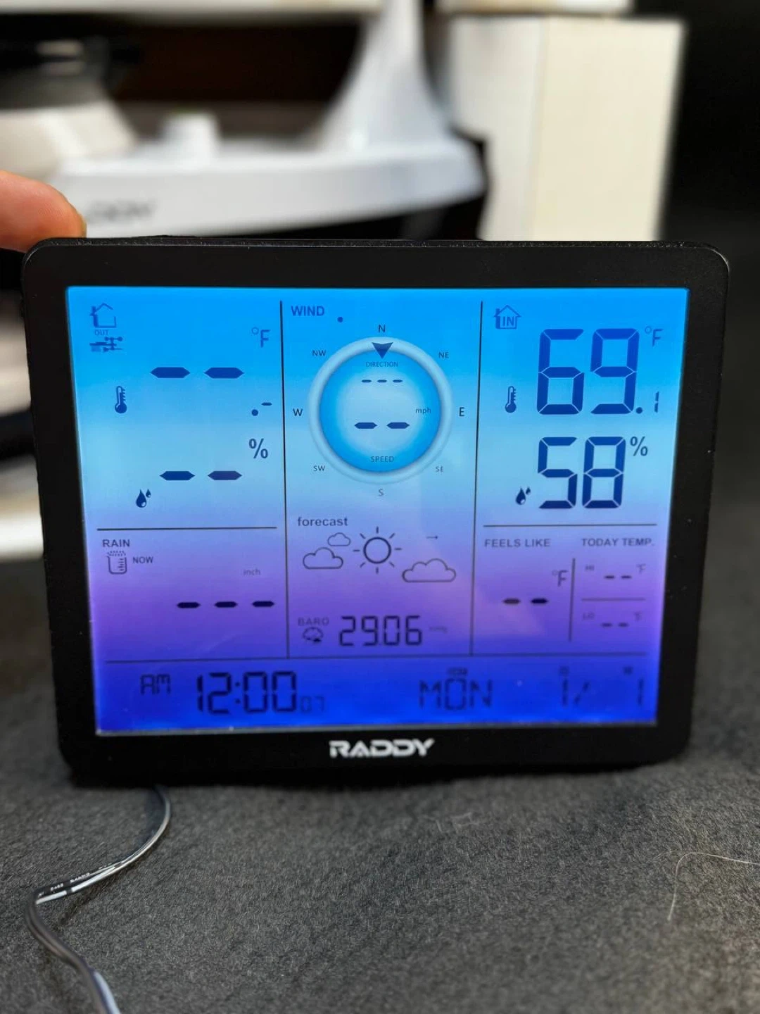 ๐ฆ๏ธ Raddy VP7 Wireless Weather Station ๐ฆ๏ธ โจ Brand New โ $80 โจ โ๏ธ Indoor & outdoor monitoring with wireless sensors โ๏ธ Color display with atomic clock โ๏ธ Measures temperature, humidity, wind speed & direction, and rainfall โ๏ธ Supports up to 5 monitoring areas (with optional sensors) โ๏ธ Large 7.4โ color screen with adjustable backlight โ๏ธ Perfect for home, garden, farm, or workshop use Stay updated with real-time weather conditions at home! ๐ค๏ธ ๐ Waterloo, ON ๐ Check out my other listings!