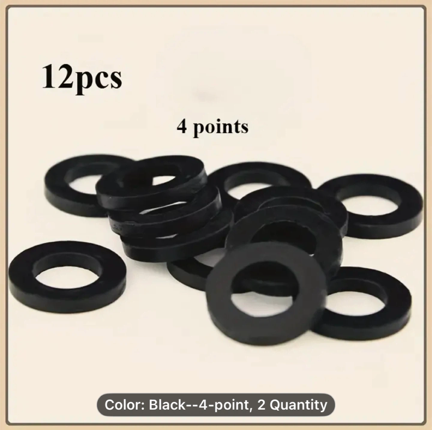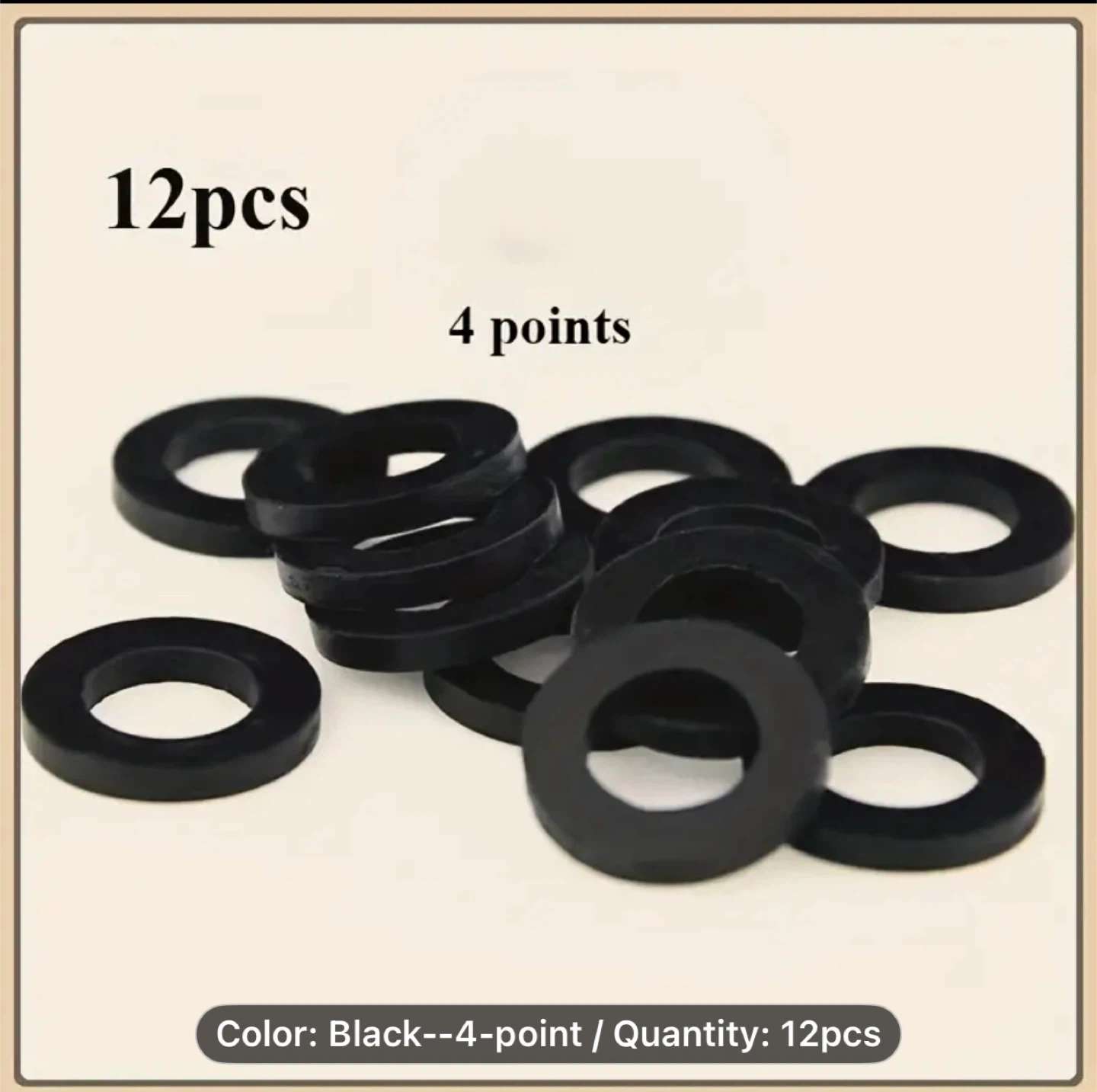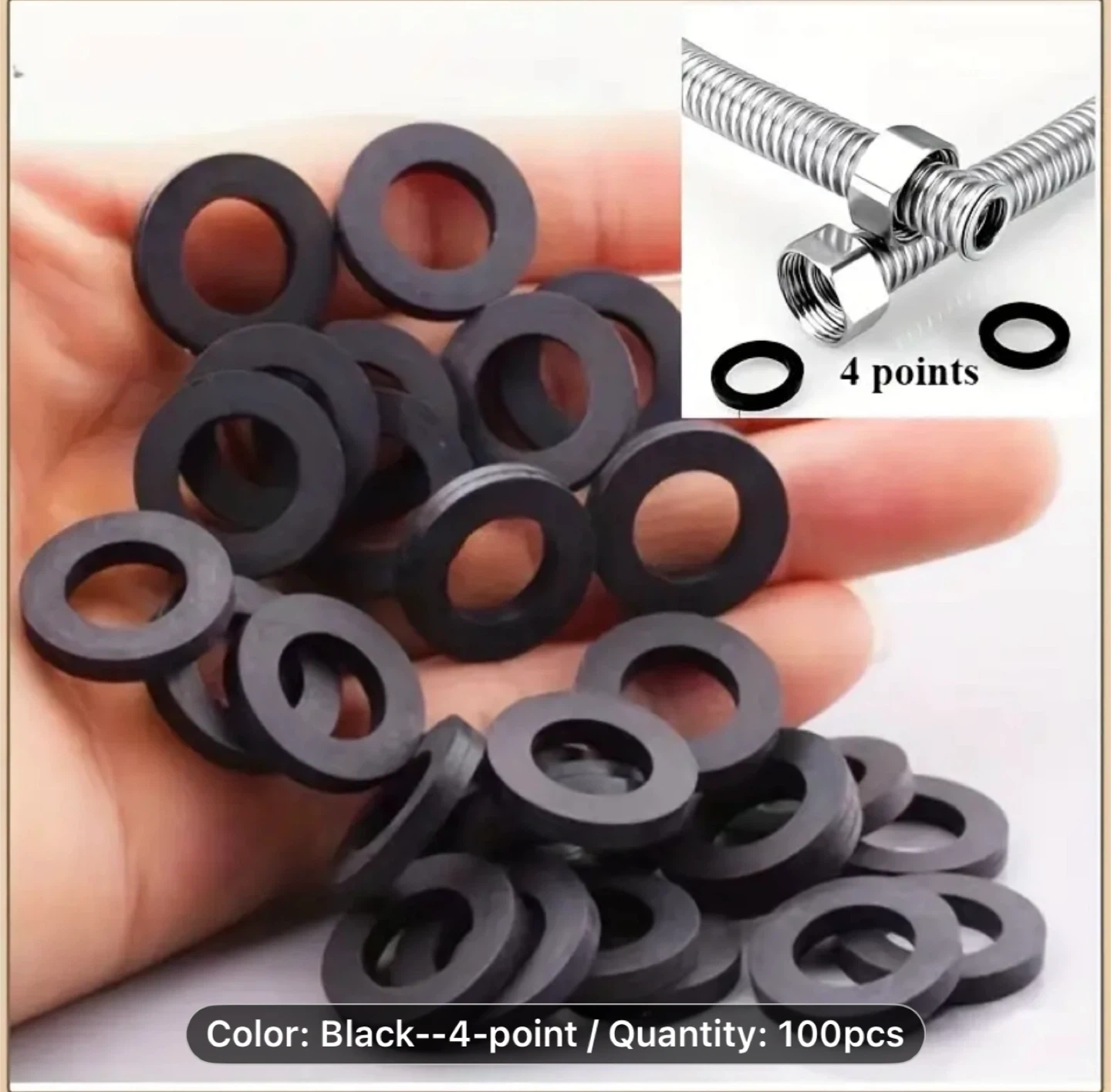 12/100pcs Black Rubber 4-Point Flat Washer Gaskets - Durable Leak-Proof Sealing Washers for Corrugated Pipes, Shower Hoses, Water Inlets, Showerheads, Water Heaters & Mixing Valves, Uniform Texture, Smooth Finish, Secure Sealing Surface, Plumbing Repair, Precision Fit, Flexible Material, Plumbing Professionals