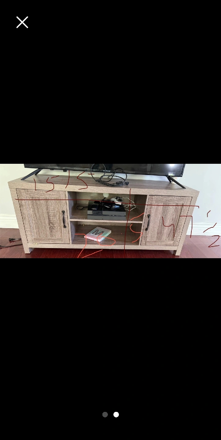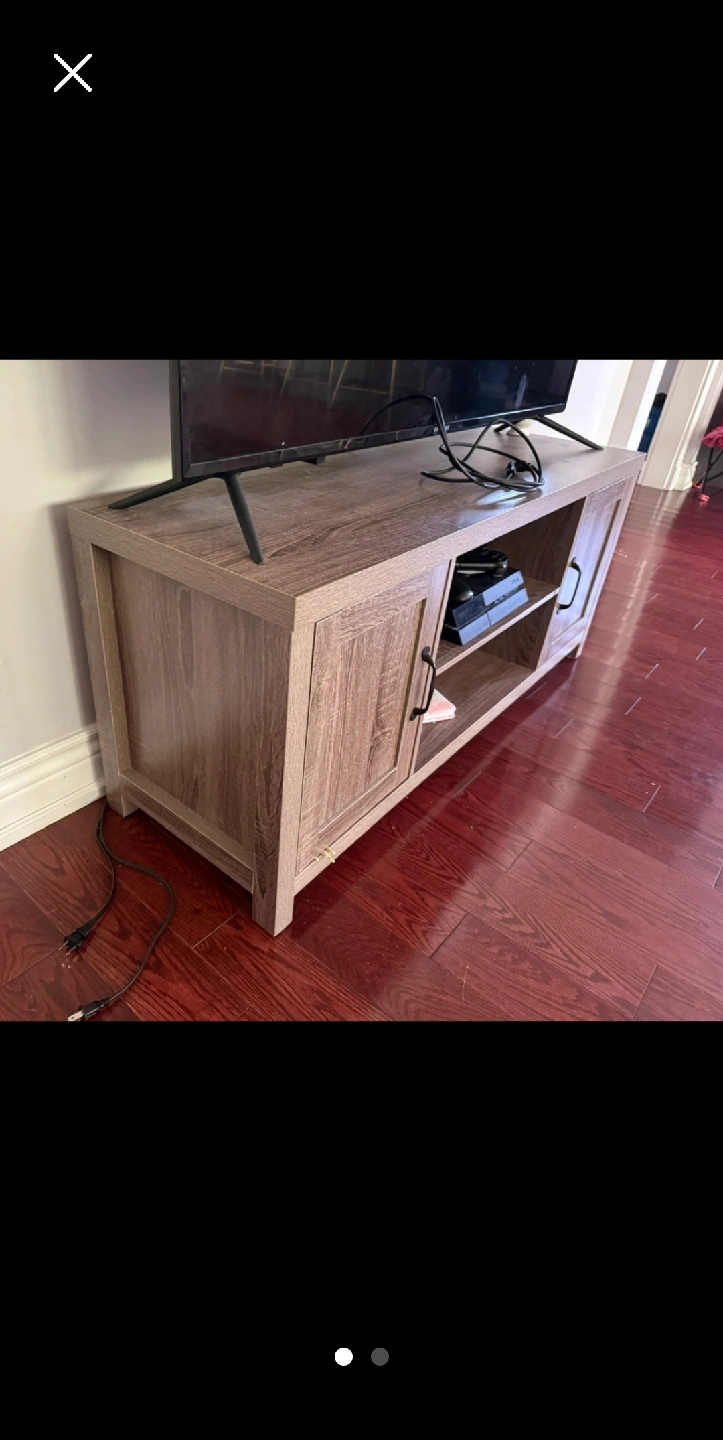 Selling a wood entertainment unit, perfect for your TV and media storage needs! It features two side cabinets with doors and an open shelf in the middle. It's In a very good condition and ready to find a new home