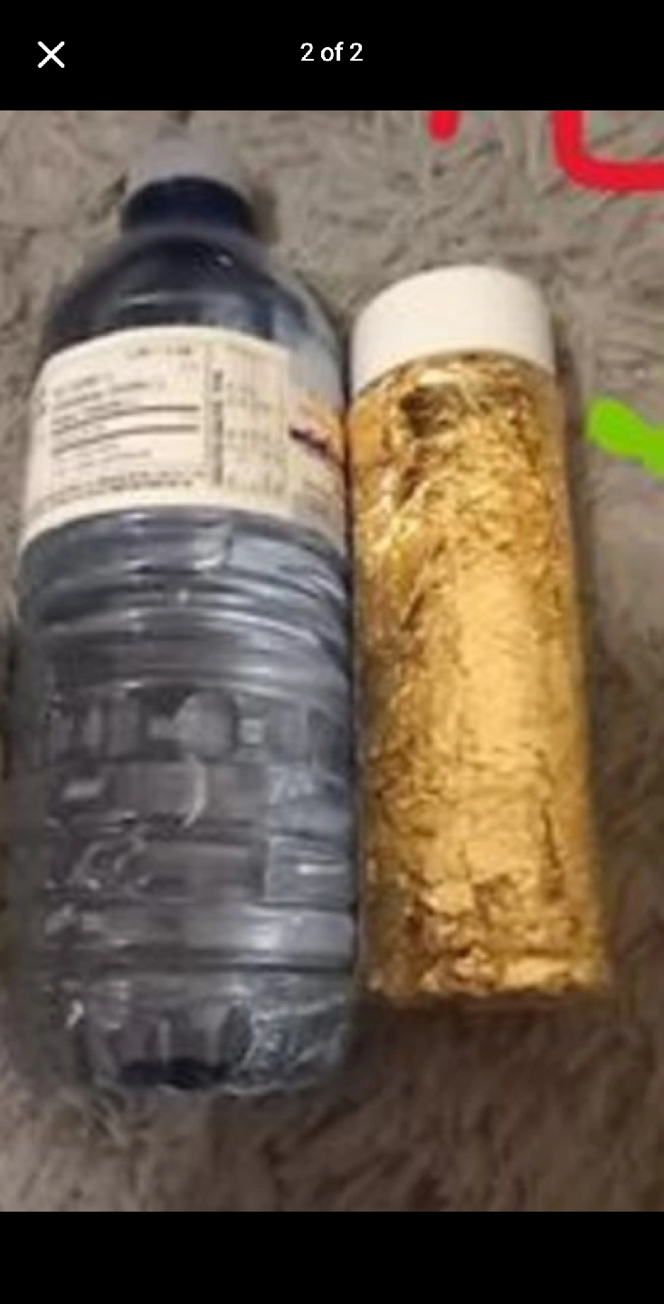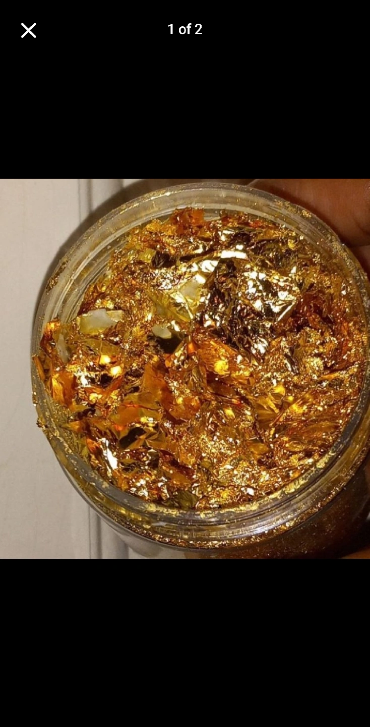 not edible gold flakes for art and crafts. 10ml. water bottle for size comparison