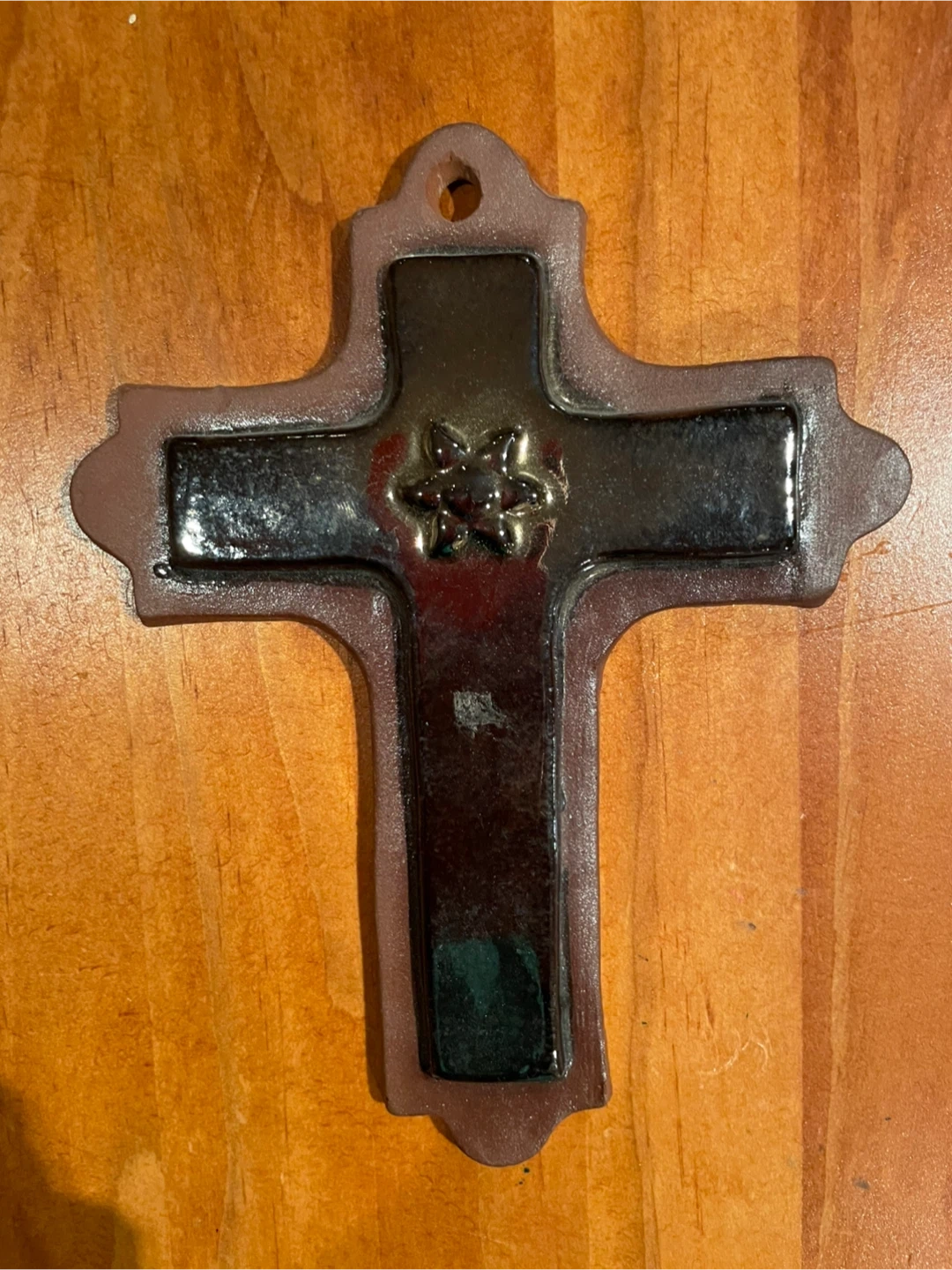 A lovely ceramic cross, perfect for wall decor! It has a brown outer layer and a dark brown glazed inner cross with a floral design in the centre. There's a hole at the top for easy hanging. Will come with gift bag. If it’s listed, don’t ask if it’s available. IT’S AVAILABLE! Asking $5. Check out my other listings too!